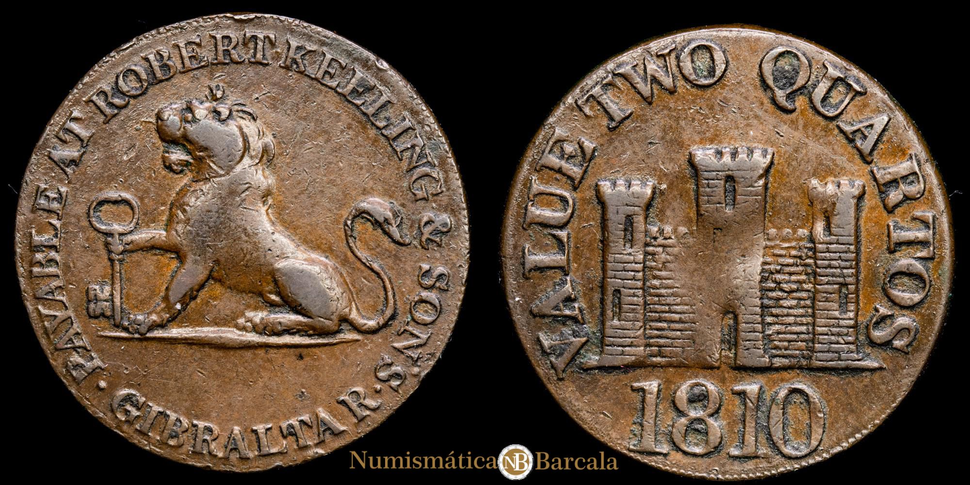 Gibraltar – Jorge III. 2 Quartos (6,76 g.). 1810. KM-TM-4.2. VF+.