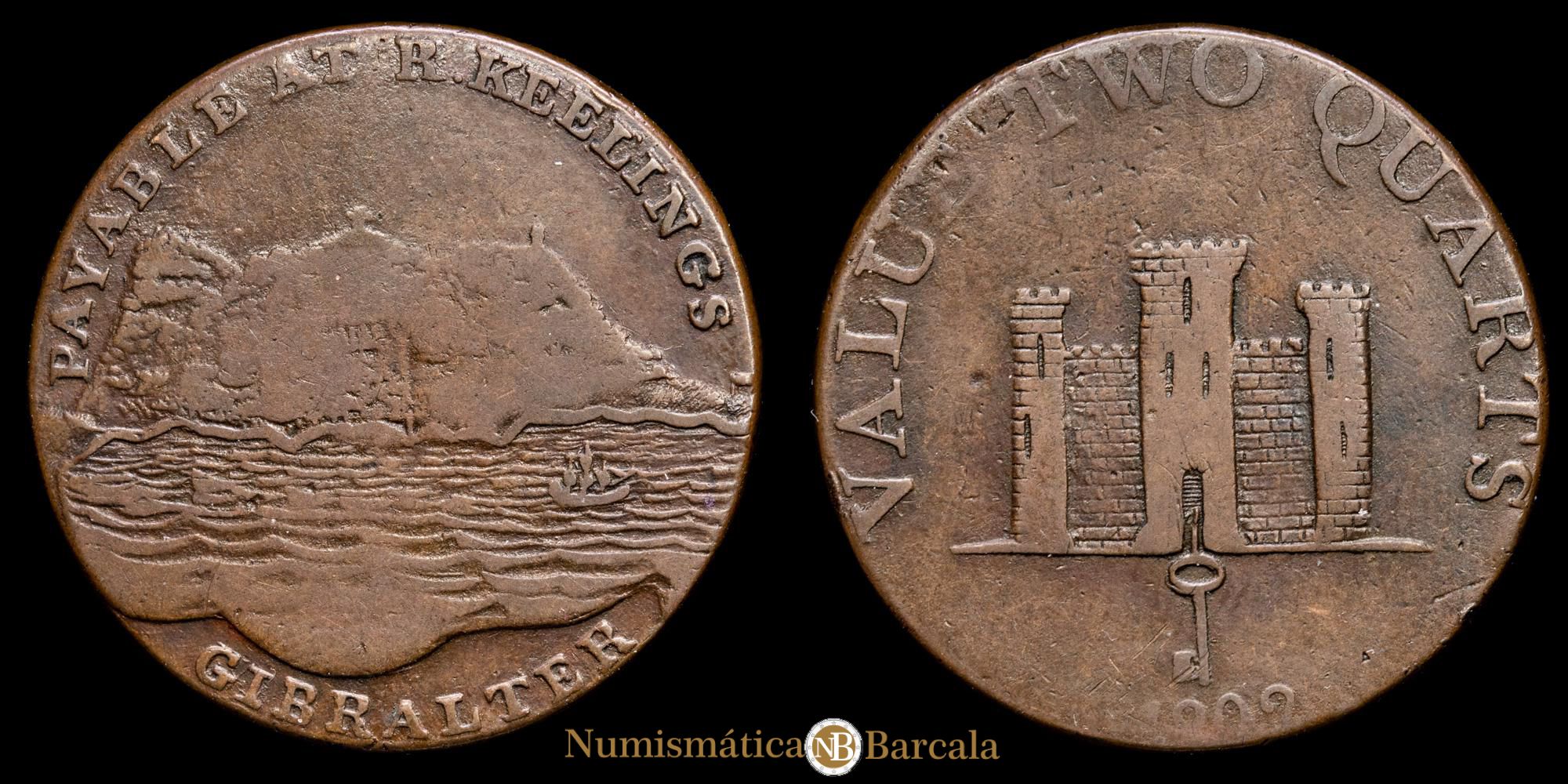 Gibraltar – Jorge III. 2 Quartos (8,77 g.). 1802. KM-TM-2.2. F+.