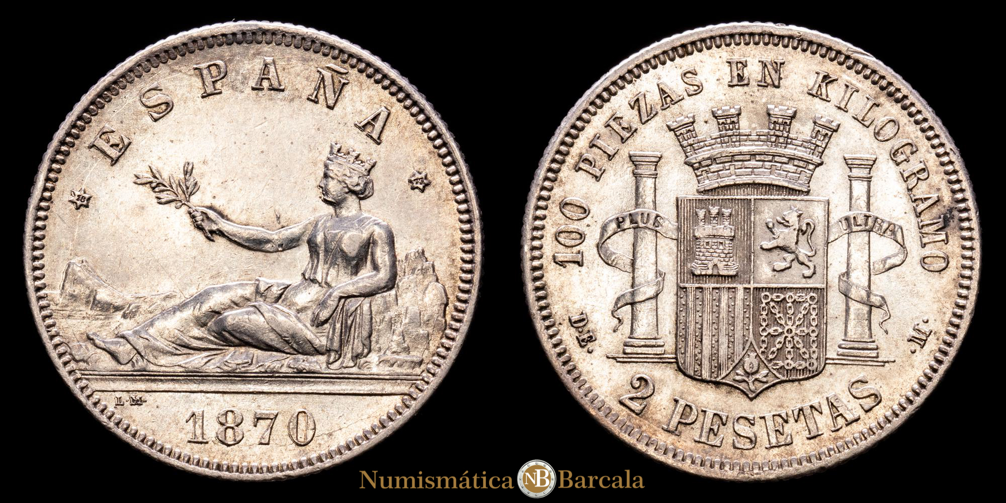 Gobierno Provisional. 2 Pesetas. (10,13 g.). Madrid. 1870 *18-73*. Ensayador DE·M. AC-28. EBC-.