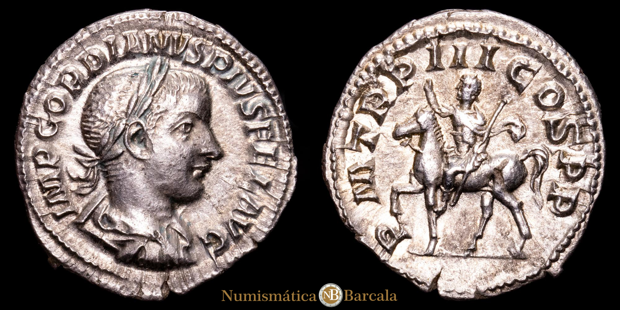 Numismática Barcala > Productos > Romanas > IMPERIO ROMANO > Alto Imperio > 238 - 255 d.C. > Gordiano III > Gordiano. Denario. (2,37 g.). Roma. 238-244 d.C.. RIC-81. EBC. R: P M TR P III COS P P