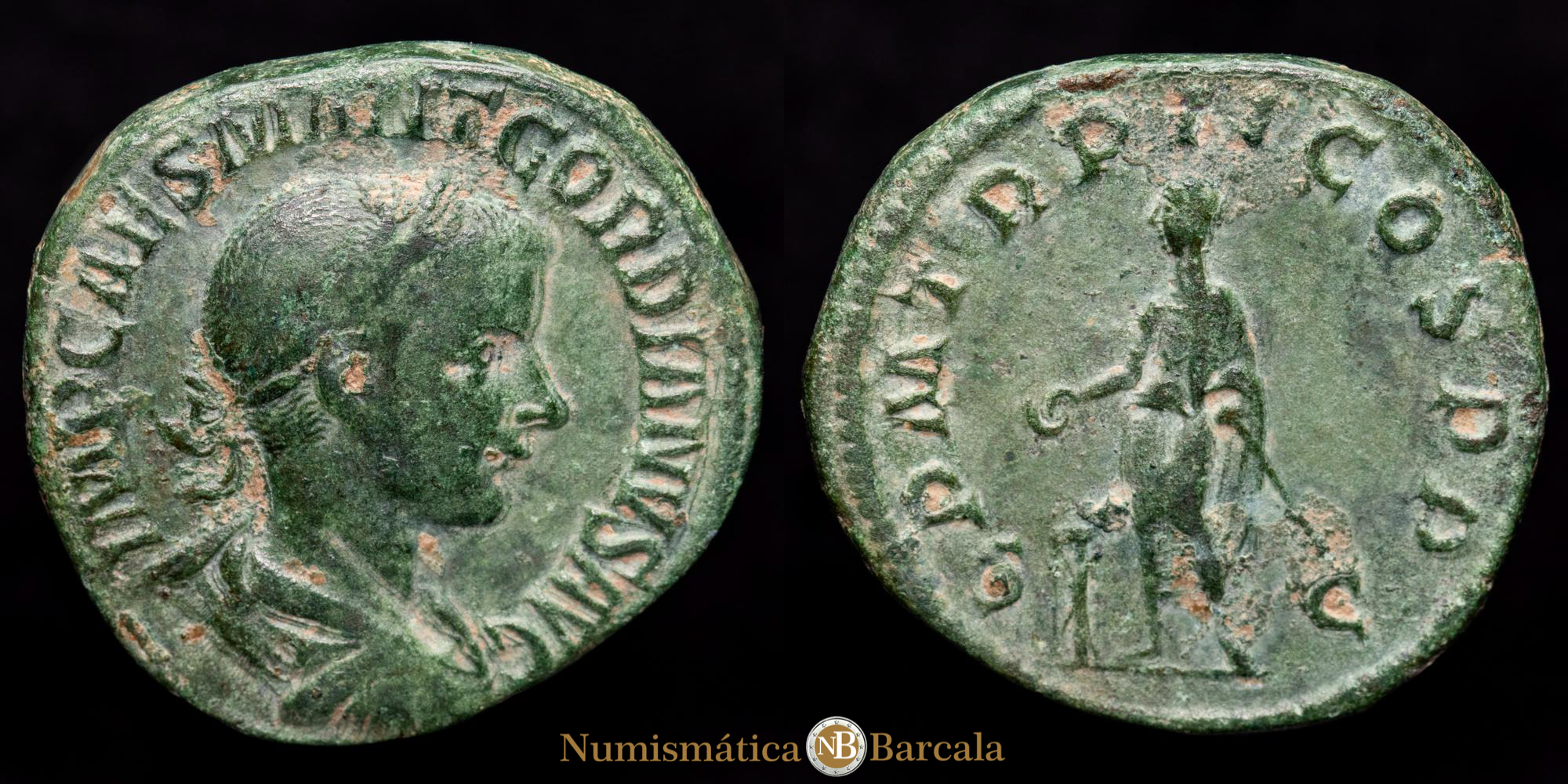 Numismática Barcala > Productos > Romanas > IMPERIO ROMANO > Alto Imperio > 238 - 255 d.C. > Gordiano III > Gordiano III. Sestercio. (17,8 g.). Roma. (238-244 d.C.). RIC-292a. MBC+. Pátina verde.
