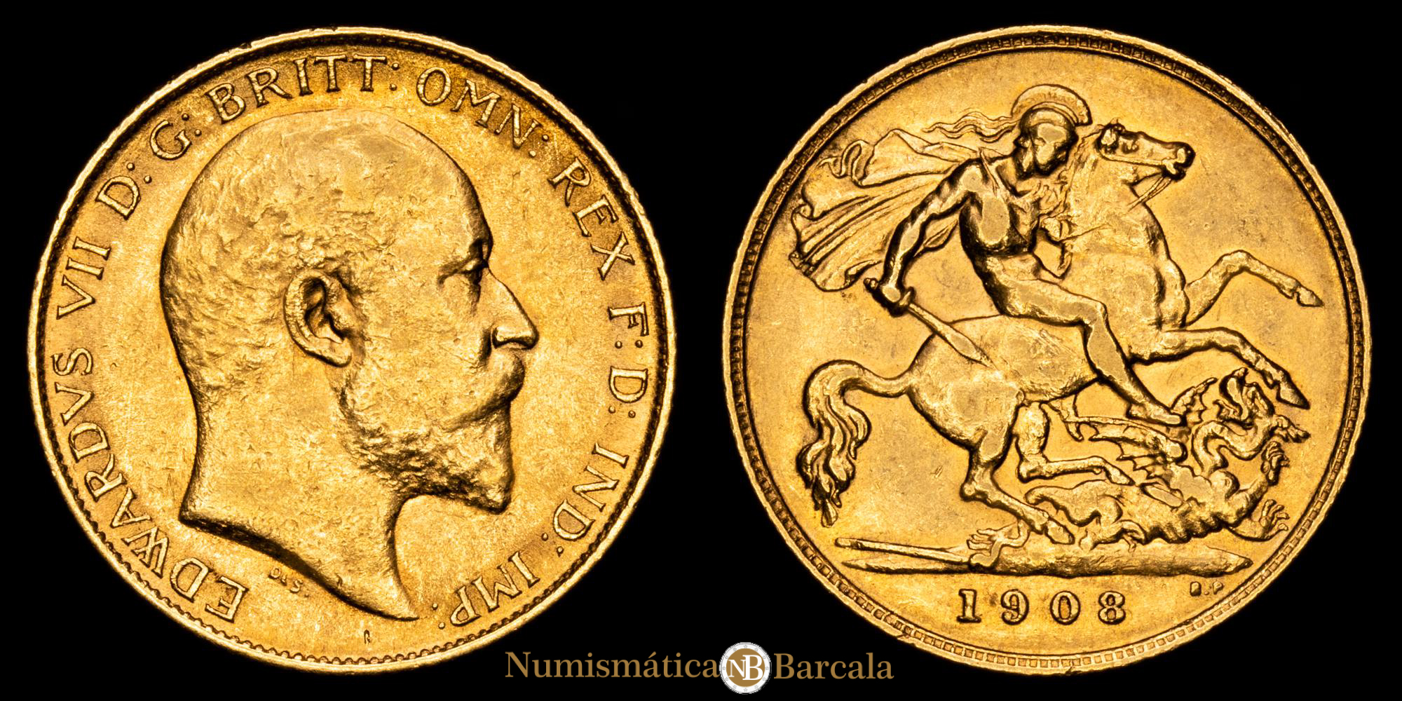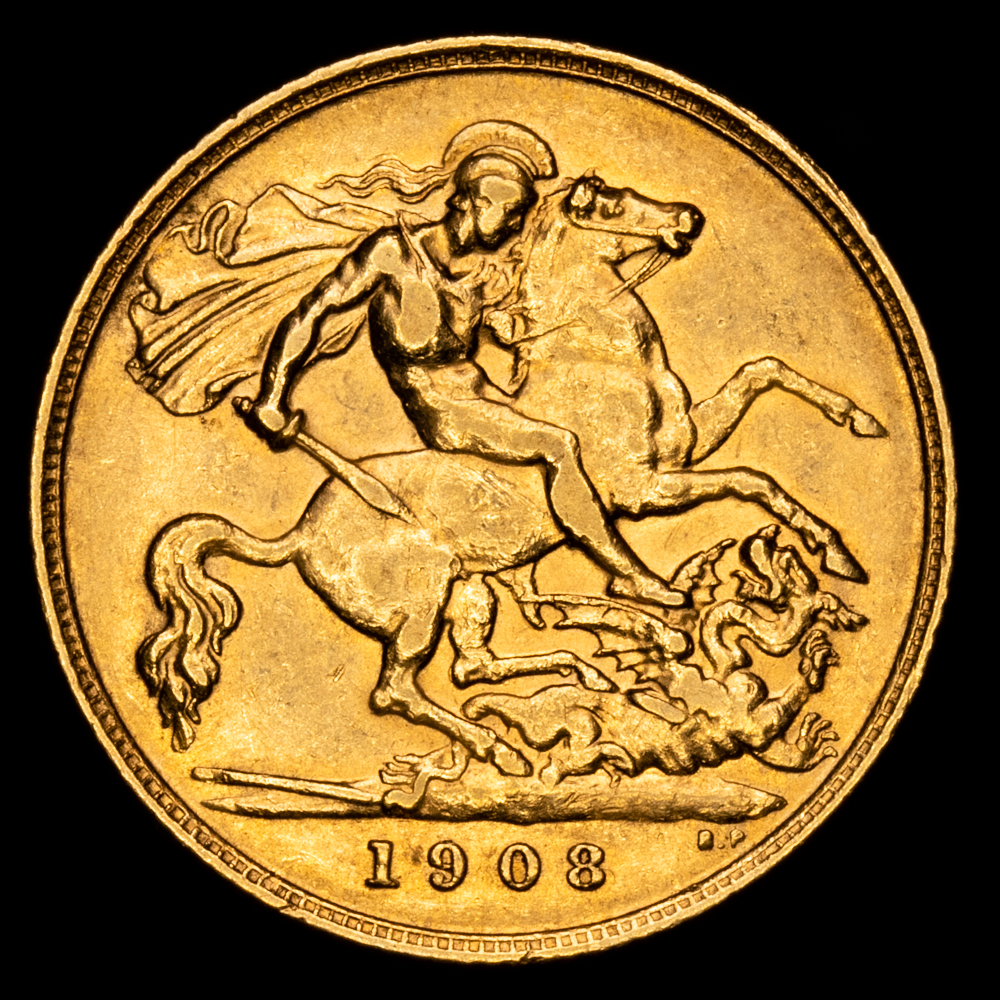 Numismática Barcala > Productos > Monedas Mundiales > Europa > Inglaterra > Gran Bretaña – Edward VII. 1/2 Sovereing. (3,96g.). 1908. KM-804. XF.