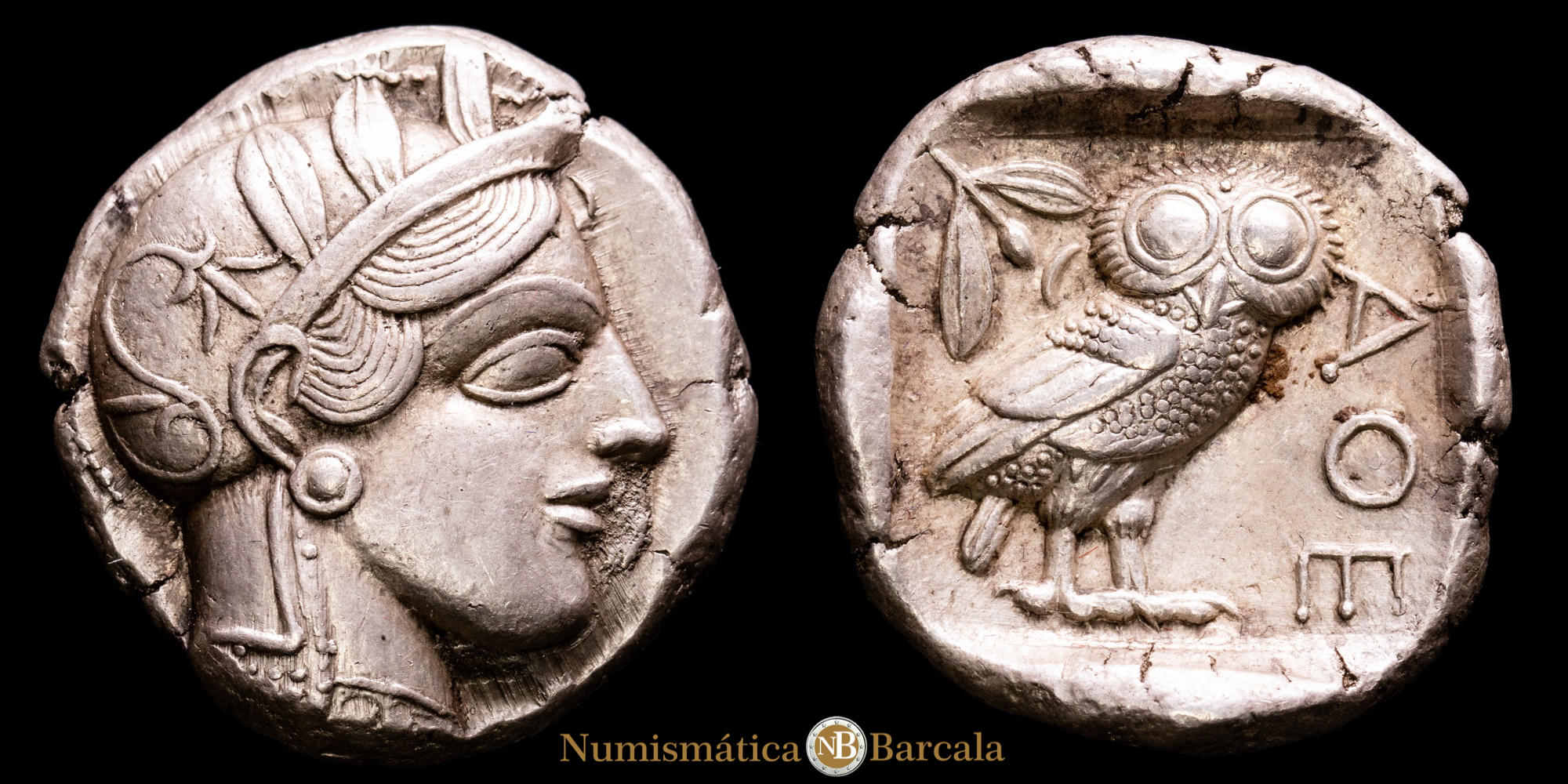 Grecia Antigua – Atica. Tetradracma. (17,23 g.). Athenas. 440-404 a.C.. GC-2526. XF+. Cabeza de Atenea con casco adornado