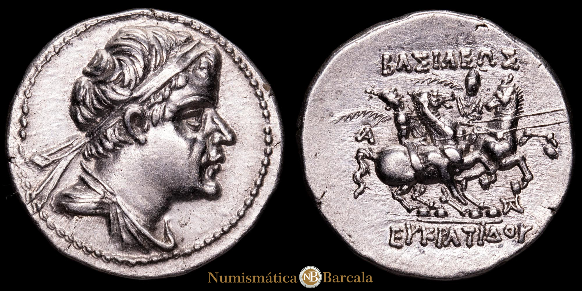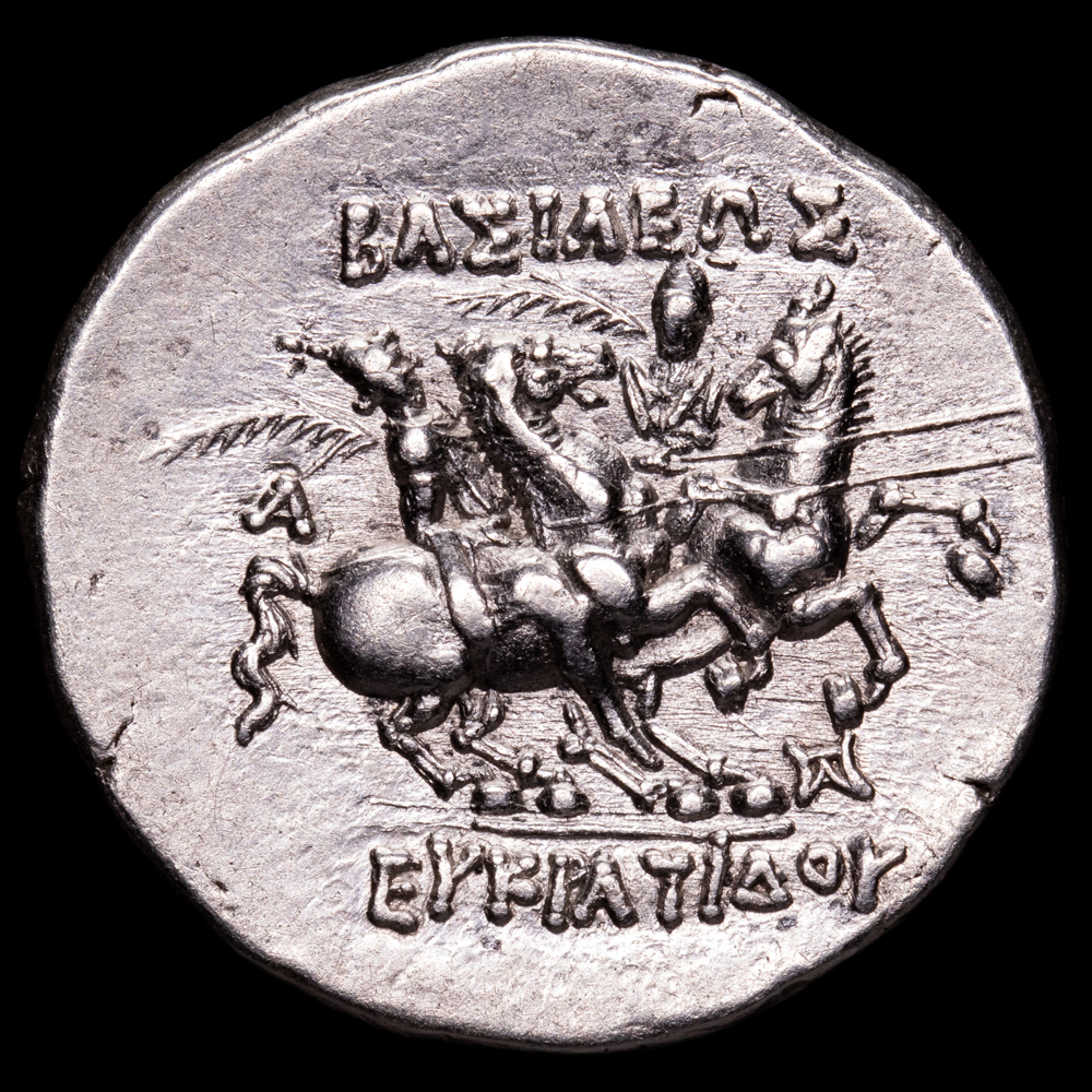 Greco-Baktrian – Eukratides I. Dracma. (4,25 g.). 170-145 a.C.. HGC-12135. MS. Brillo original.