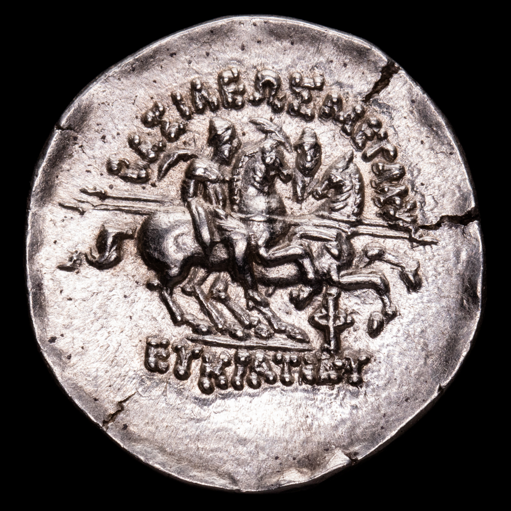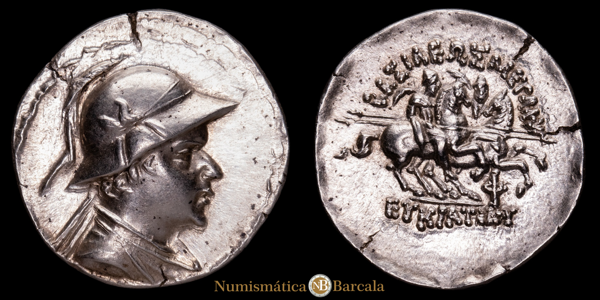 Greco-Baktrian – Eukratides I. Dracma. (4,27 g.). 170-145 a.C.. HGC-12136. MS. Brillo original.