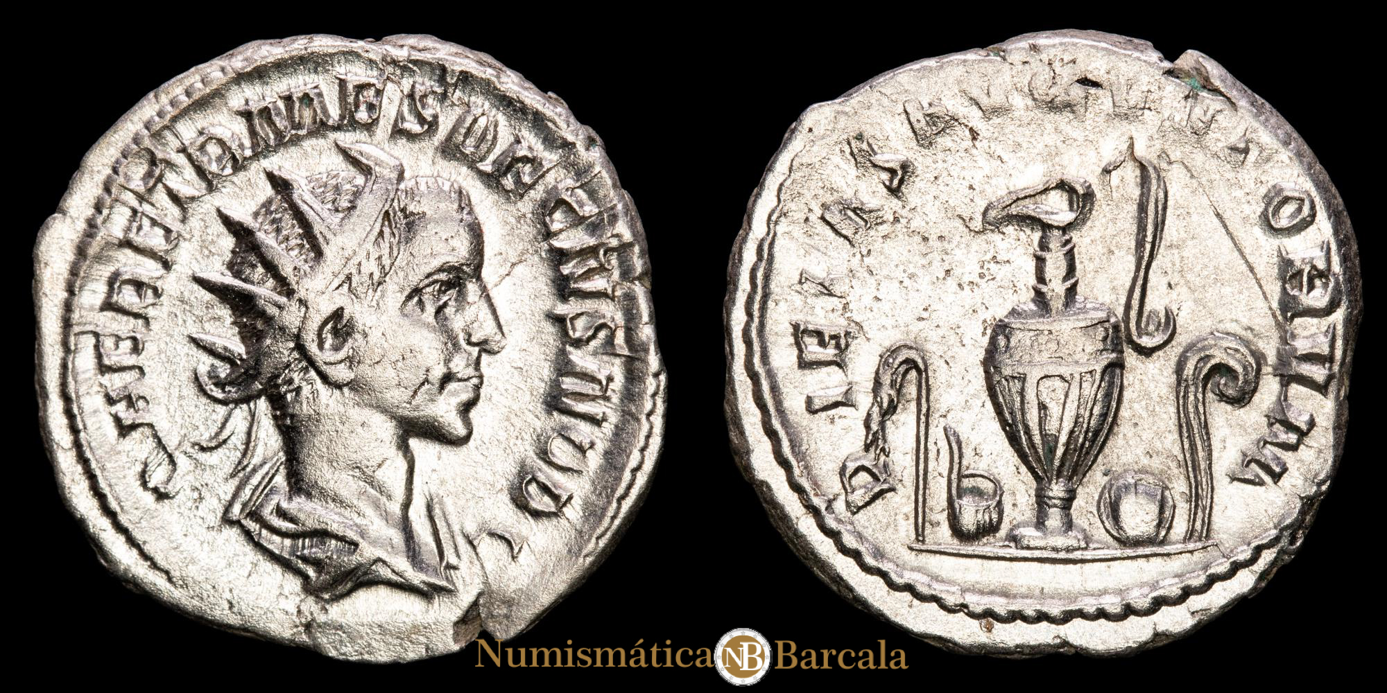 Herenio Etrusco. Antoniniano de plata (3,86 g.). Roma, 251 a.C. PIETAS AVGVSTORVM. RIC IV 143. EBC