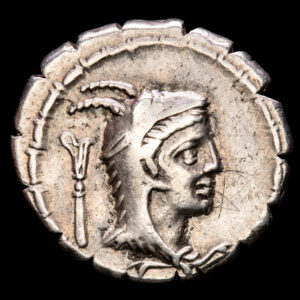 M. Caecilius. Denario de plata (3,80 g.). Roma, 127 a.C. Craw-263/1a. VF+