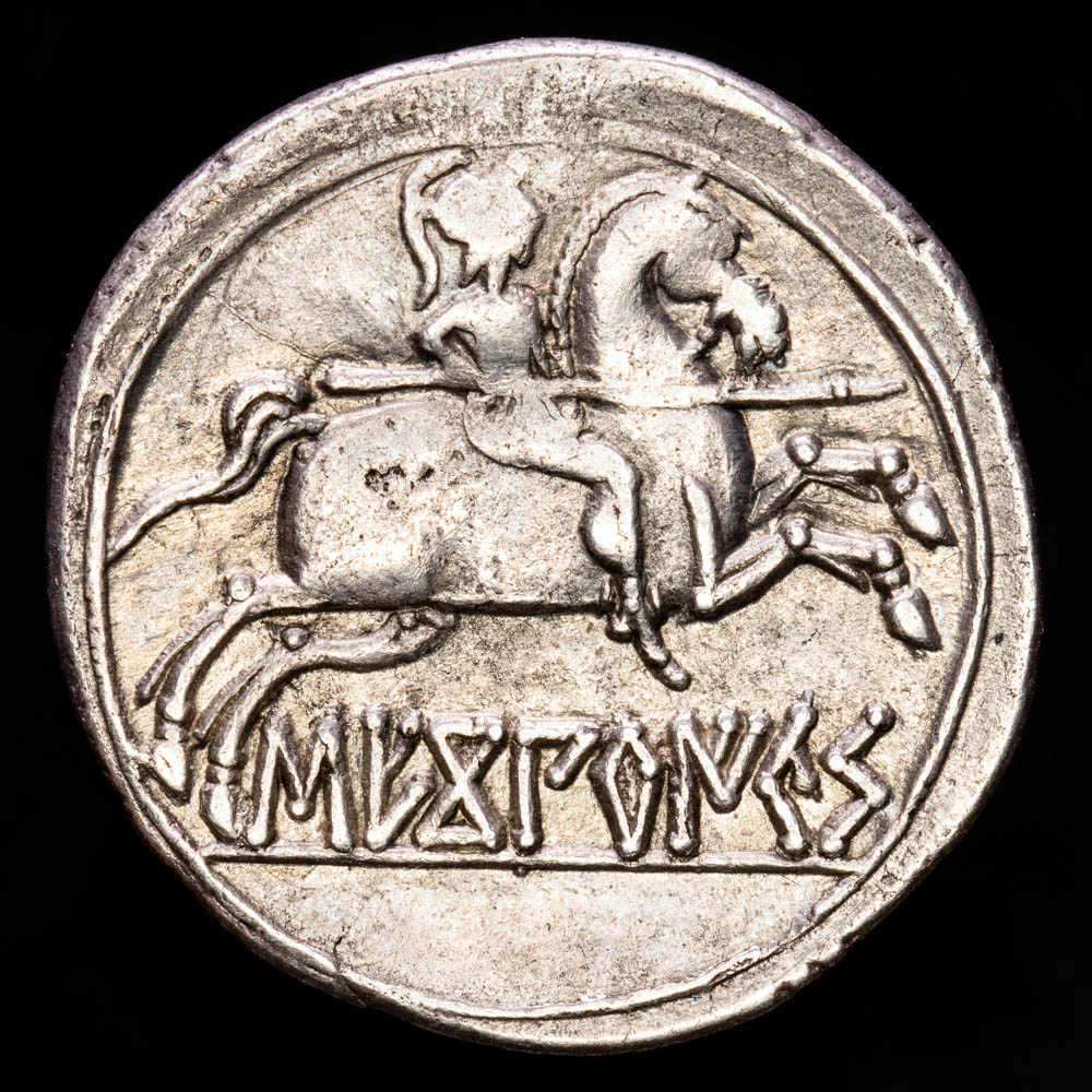 Hispania Antigua – Sekobirikes. Denario. (3,12 g.). Selices (Cuenca). 120-30 B.C.. ACIP-2168. MBC+. R:Jinete lancero a derecha.