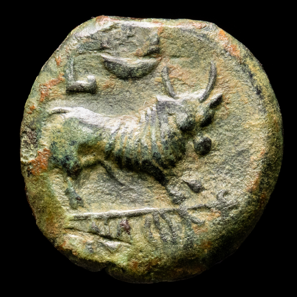Numismática Barcala > Productos > Hispánicas > Hispania – Cástulo. Semis. (3,89 g.). Linares (Jaén). 180-150 B.C.. AB-722. EF.