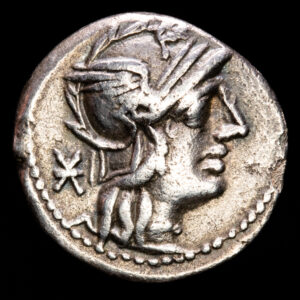 M. Caecilius. Denario de plata (3,80 g.). Roma, 127 a.C. Craw-263/1a. VF+