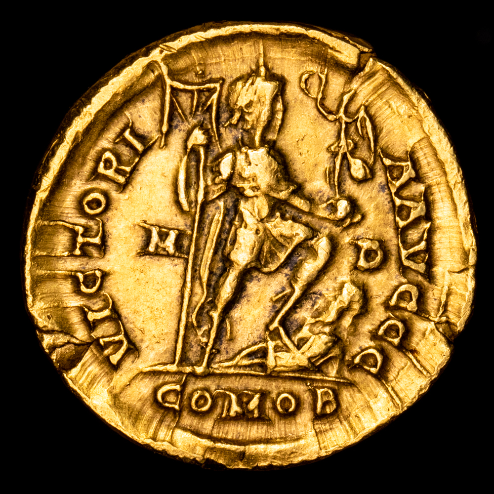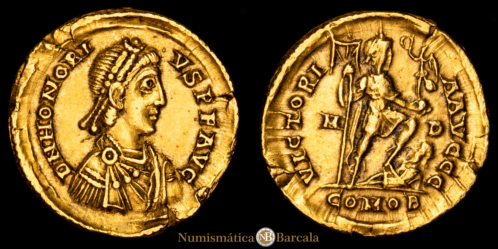 Numismática Barcala > Productos > Romanas > IMPERIO ROMANO > Bajo Imperio > 363 - 423 d.C. > Honorio > Honorio (393-423 d.C.) Solido ( 4,43 g.). Mediolanum (Milán), VF+ , 397-402 d.C. RIC IX 35c.
