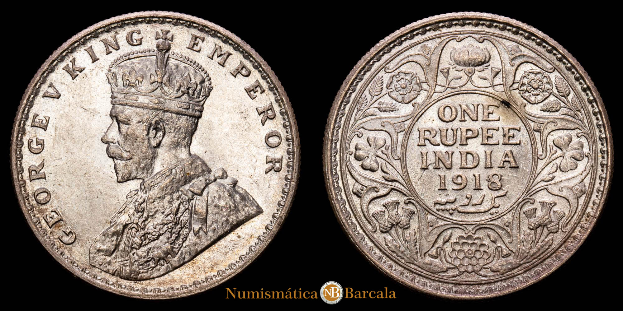 India Británica – George V. 1 Rupia. (11,57 g.). 1818. KM-524. EBC.