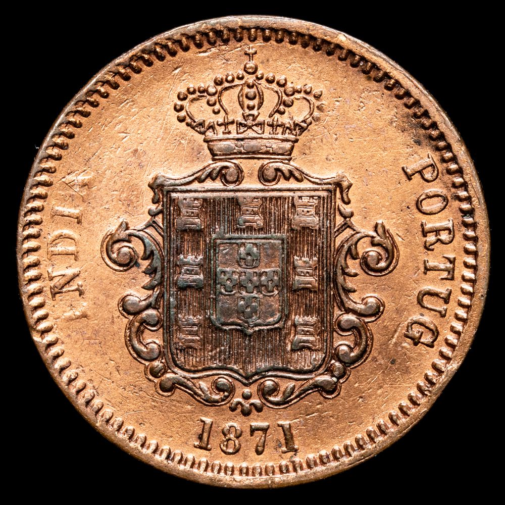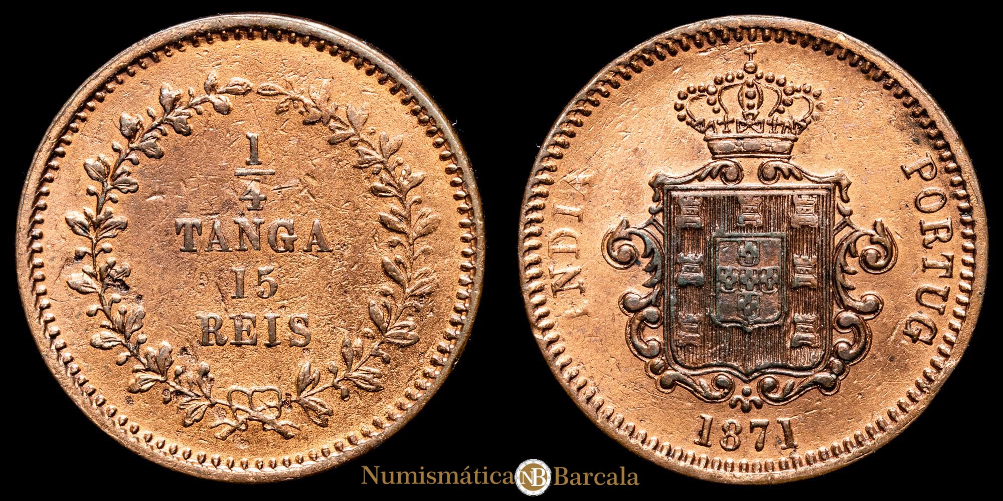 India – D. Luis I. 1/4 Tanga (9,57 g.). Bombain. 1871. KM-304. XF-. Rara.