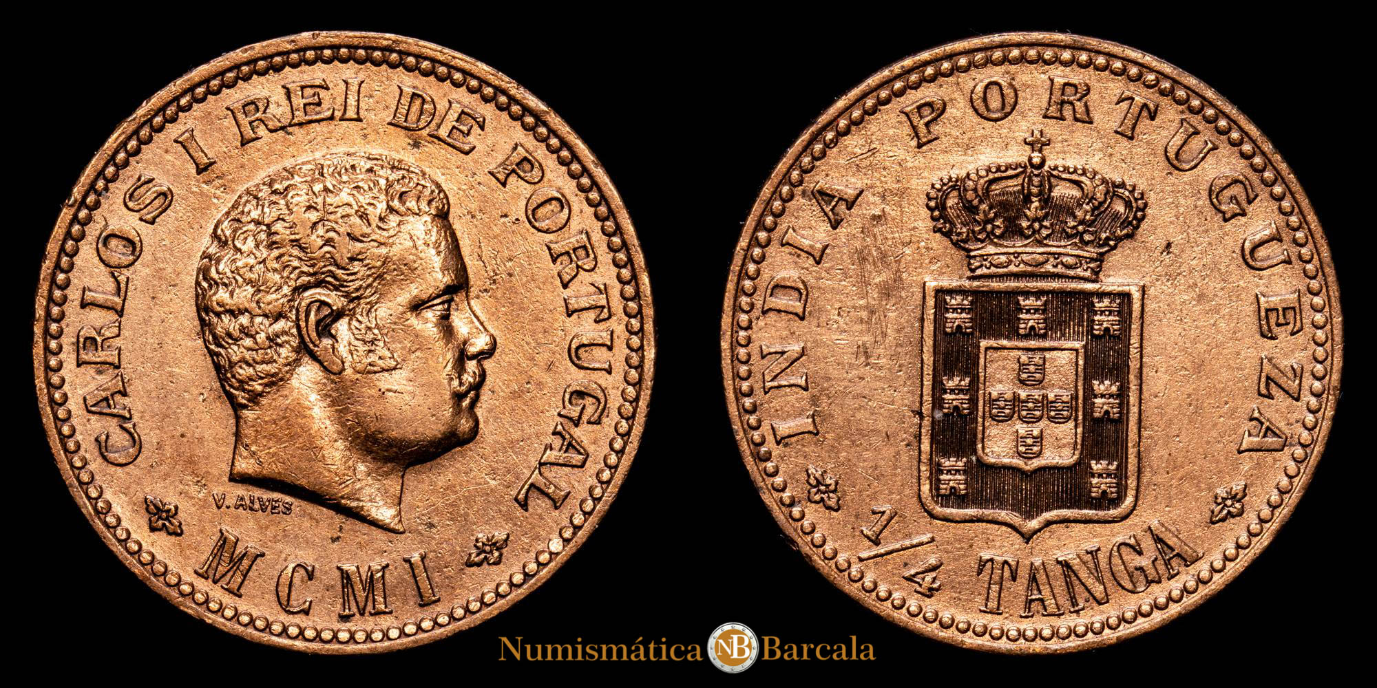 India Portuguesa – Carlos I. 1/4 Tanga. (6,28 g.). 1901-MCMI. KM-15. MBC+. Limpiada. Fecha en números romanos