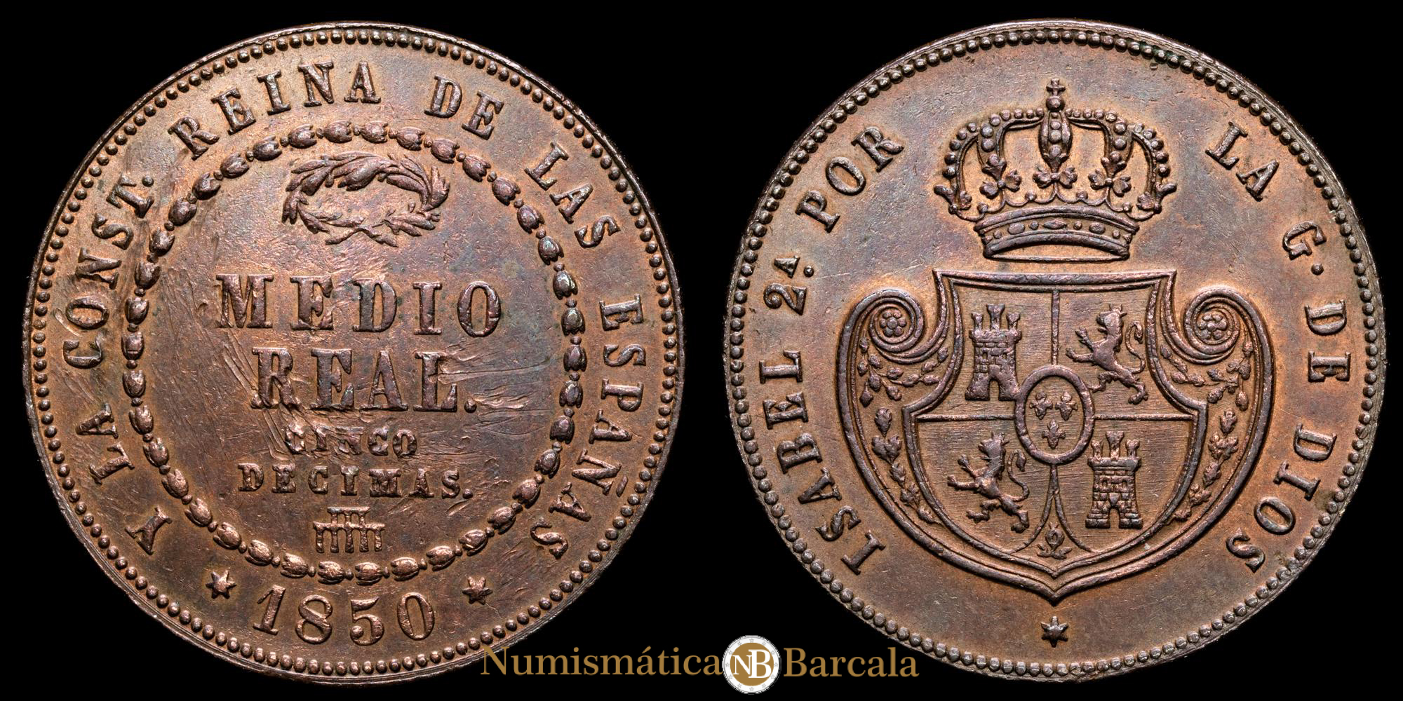 Isabel II. 1/2 Real (19,54 g.).1850. Segovia. AC-155. EBC-