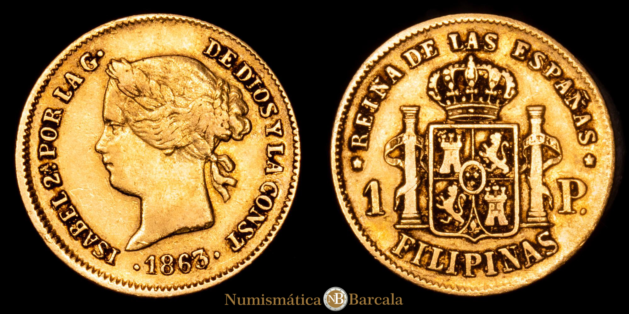 Isabel II. 1 Peso. (1,63 g.). Manila. 1863. AC–823. MBC+.