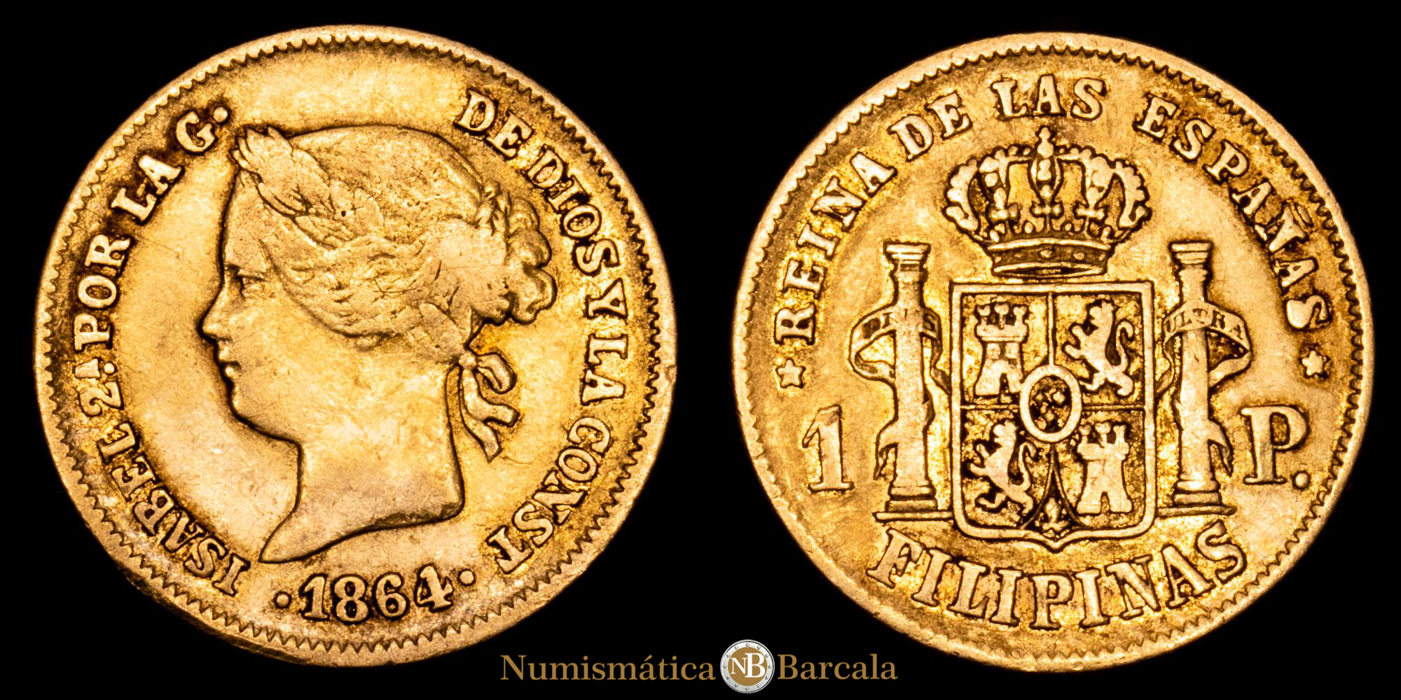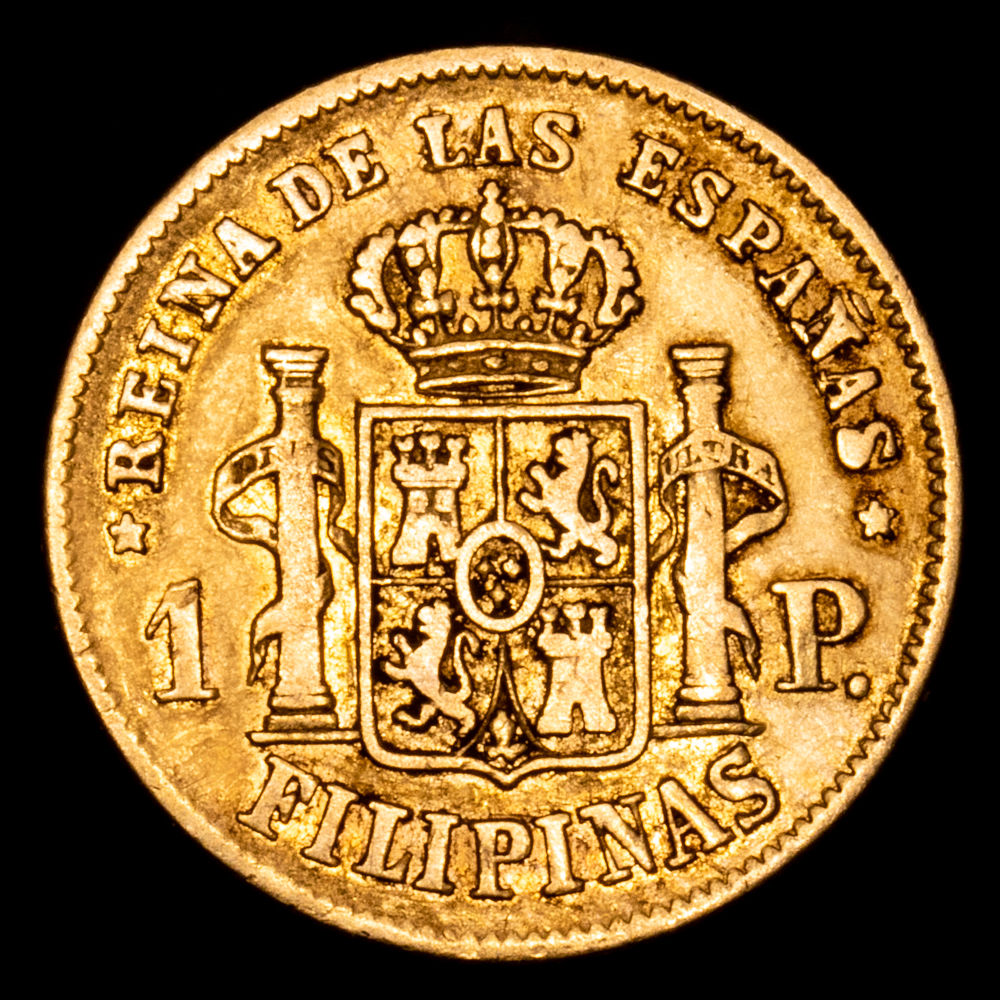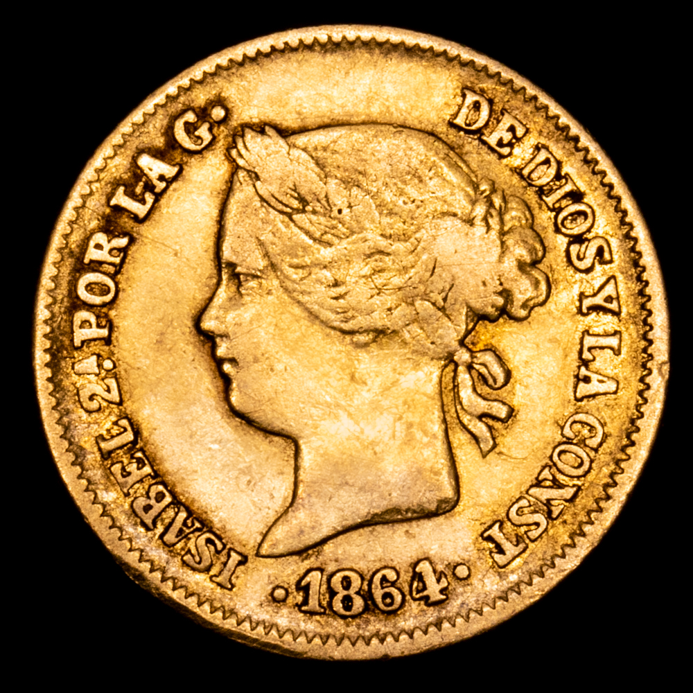 Numismática Barcala > Productos > Monarquia Española > Borbones > 1833-1868 Isabel II > Isabel II. 1 Peso. (1,64 g.). Manila. 1864. AC-826. MBC.