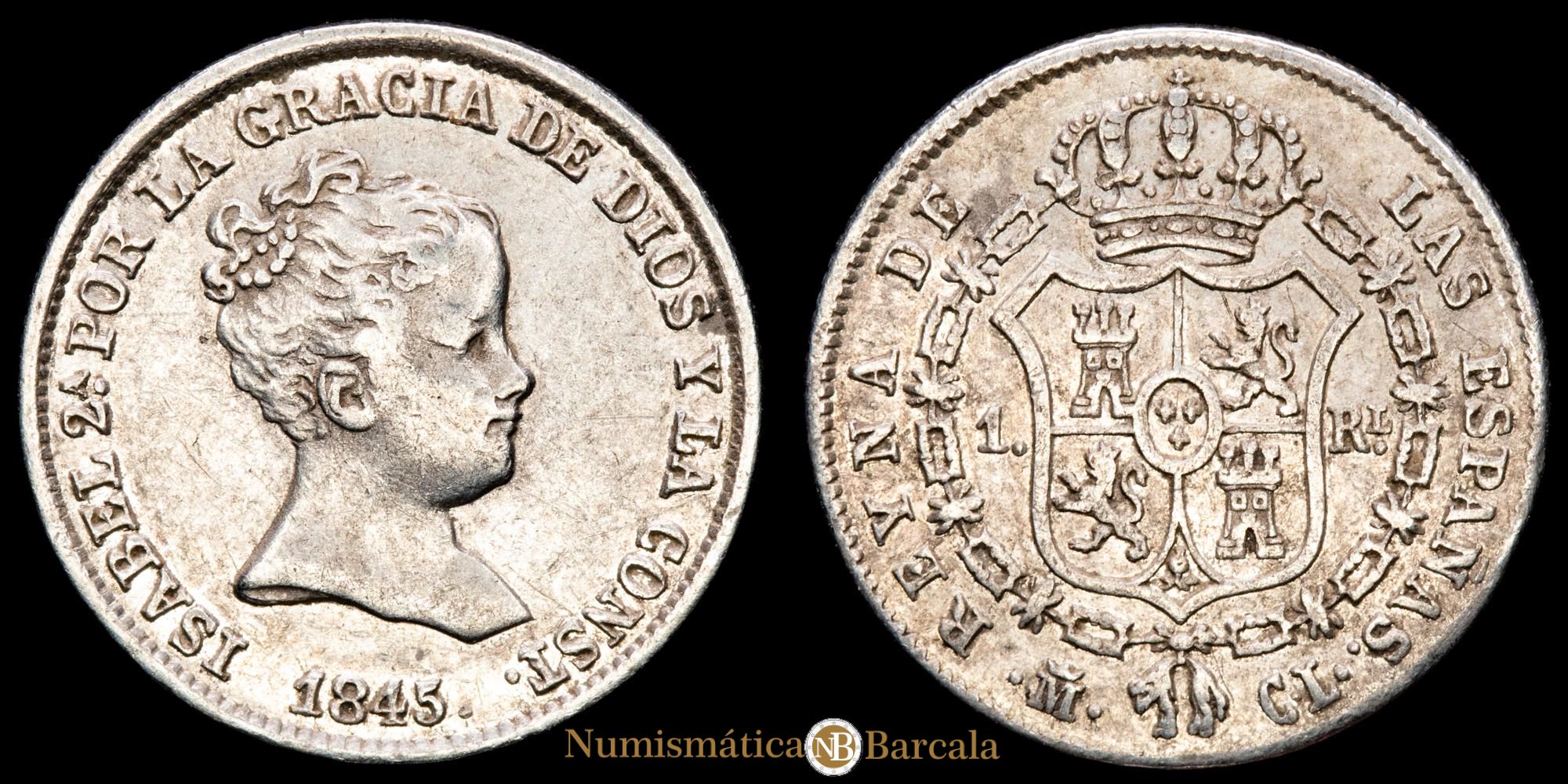 Numismática Barcala > Productos > Monarquia Española > Borbones > 1833-1868 Isabel II > Isabel II. 1 Real. (1,49g.). Madrid. 1845. Ensayador CL. AC-298. EBC-.