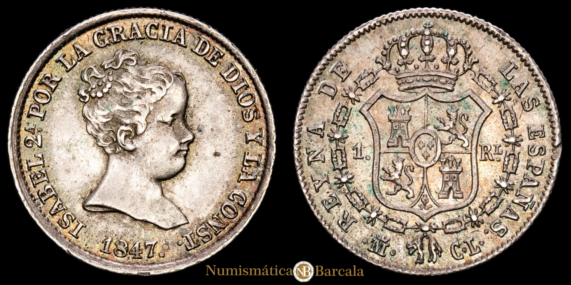 Numismática Barcala > Productos > Monarquia Española > Borbones > 1833-1868 Isabel II > Isabel II. 1 Real. (1,56g.). Madrid. 1847. AC-299. EBC. Brillo original. Atractivo ejemplar.