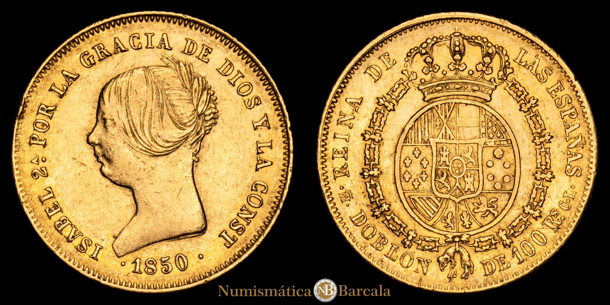 Numismática Barcala > Productos > Monarquia Española > Borbones > 1833-1868 Isabel II > Isabel II. 100 Reales. (8,21 g.). Madrid. 1850. Ensayador C·L. AC-757. MBC+.
