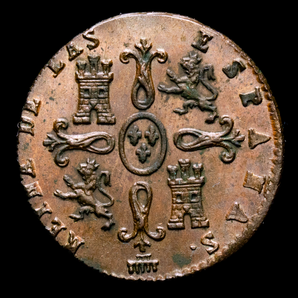 Isabel II. 2 Maravedís (2,27 g.).1847. Segovia. AC-59. EBC. Restos de brillo original.