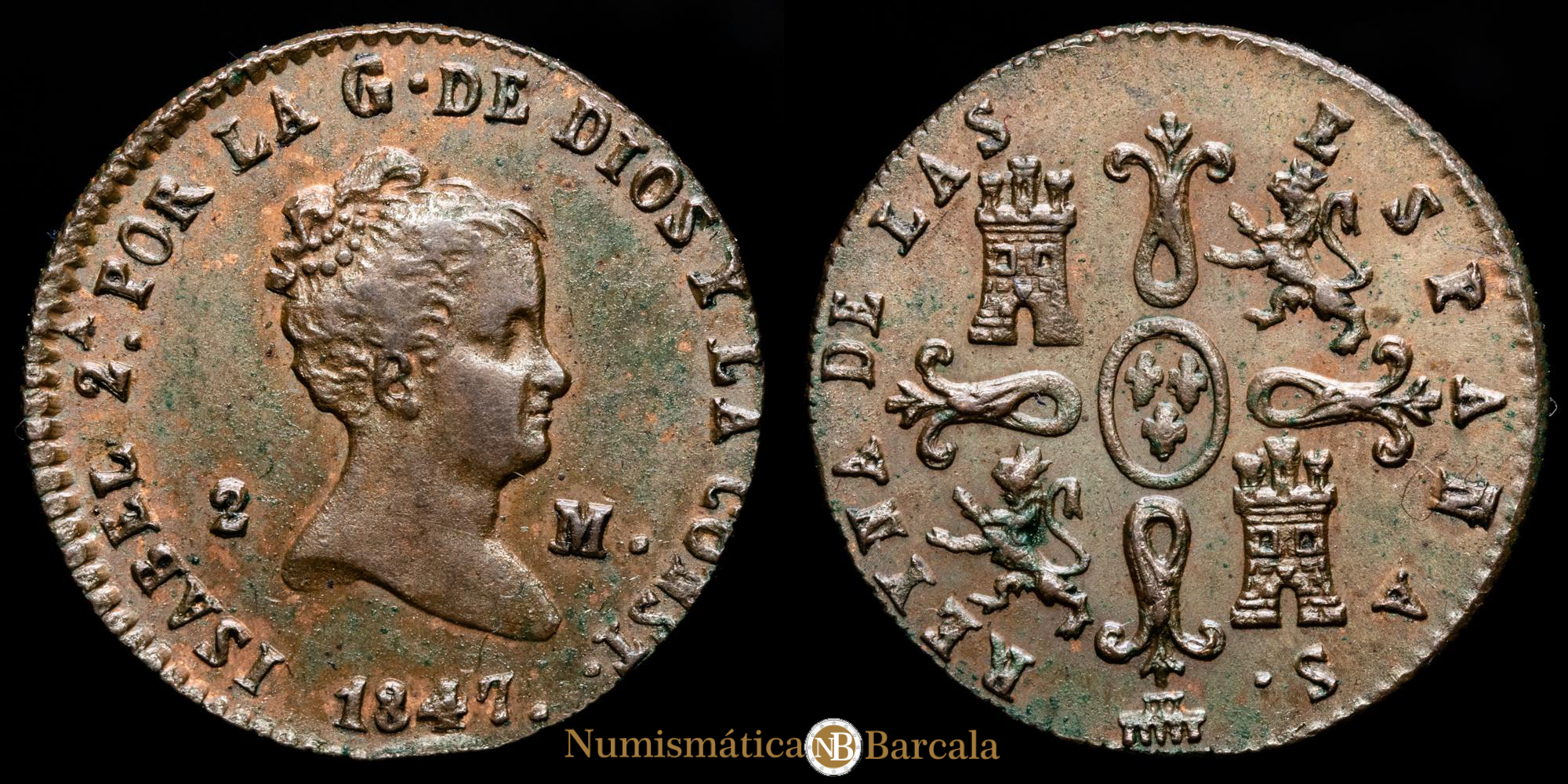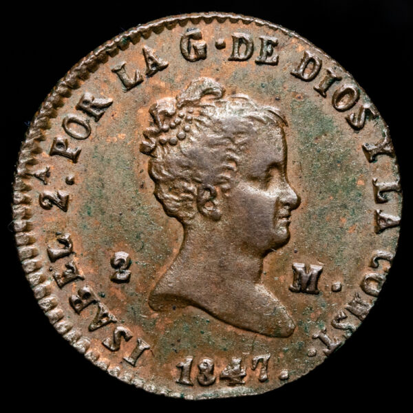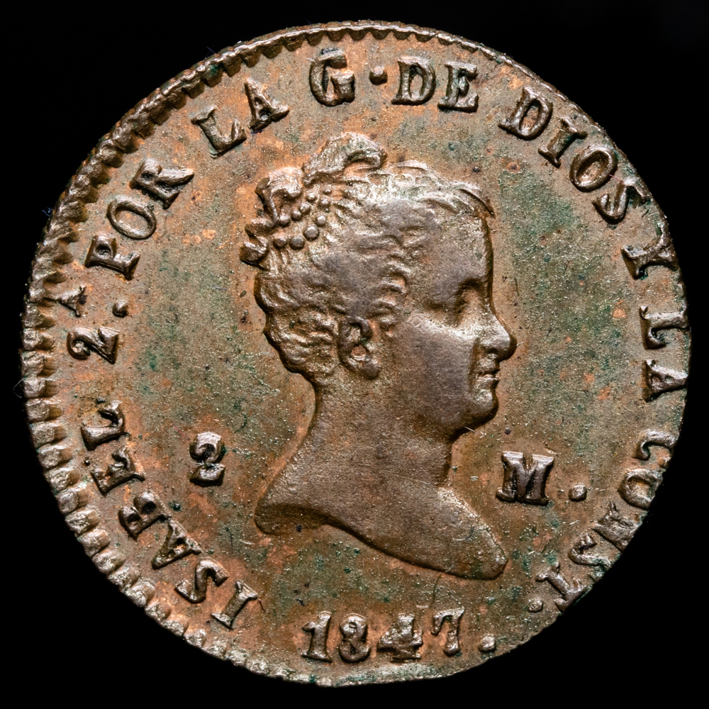 Isabel II. 2 Maravedís. (2,28g.). Segovia. 1847. AC-59. EBC. R.C.O.