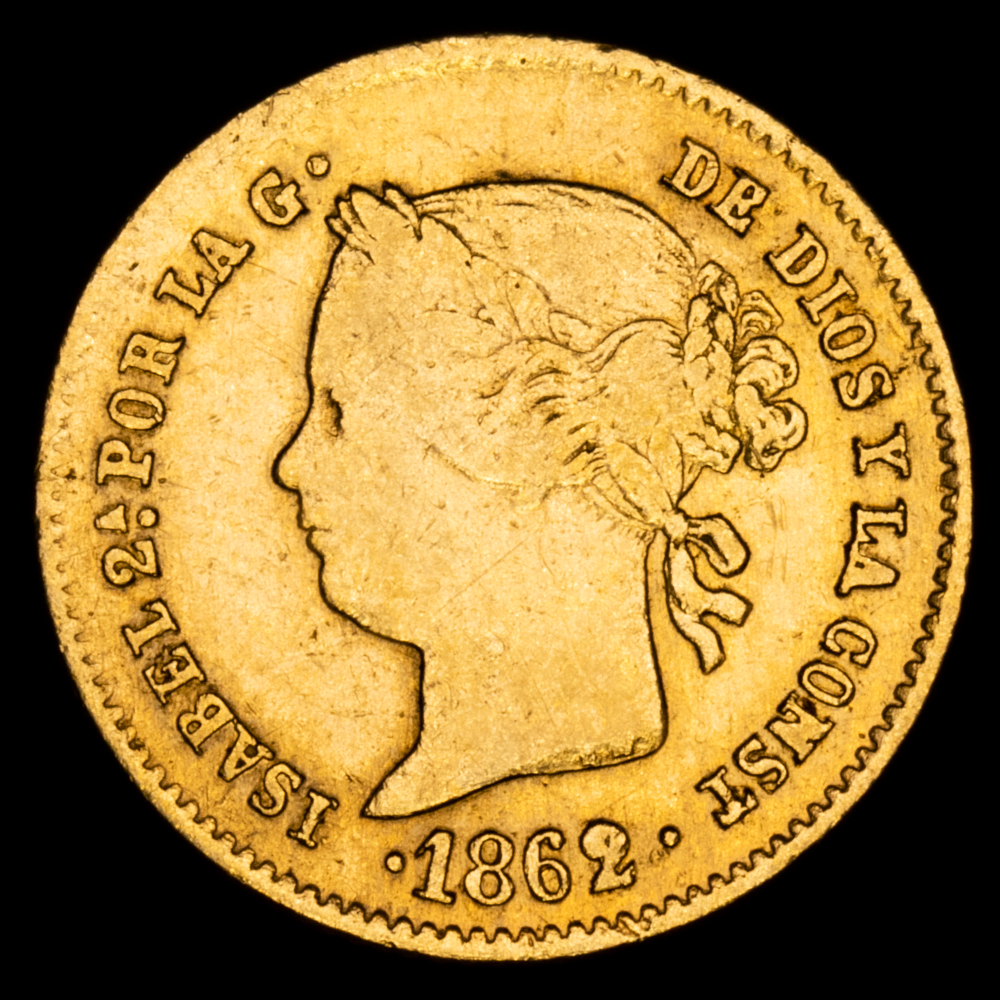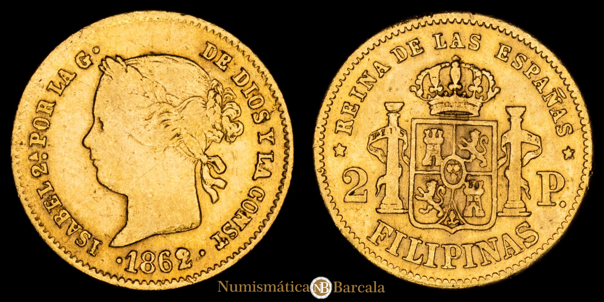 Isabel II. 2 Pesos. (3,32g.). Manila. 1862. AC-838. VF.