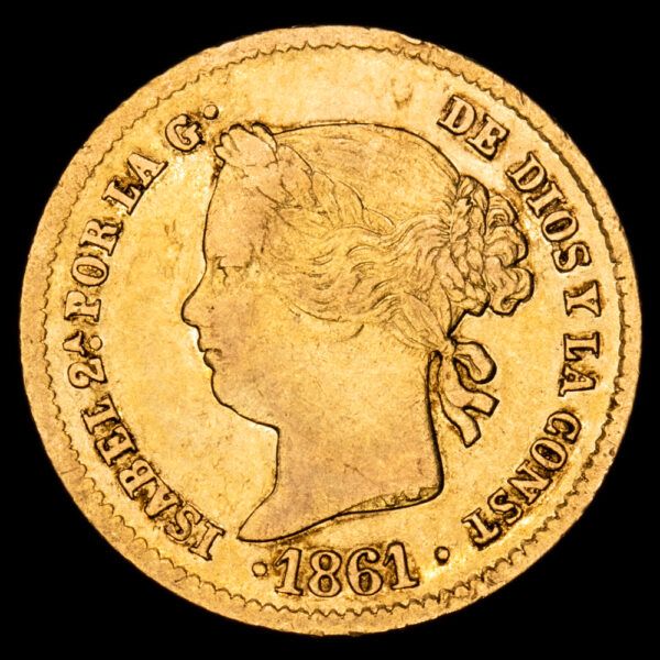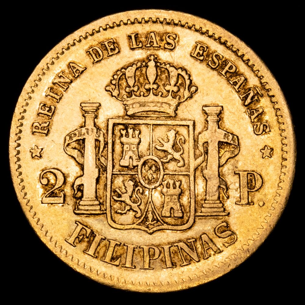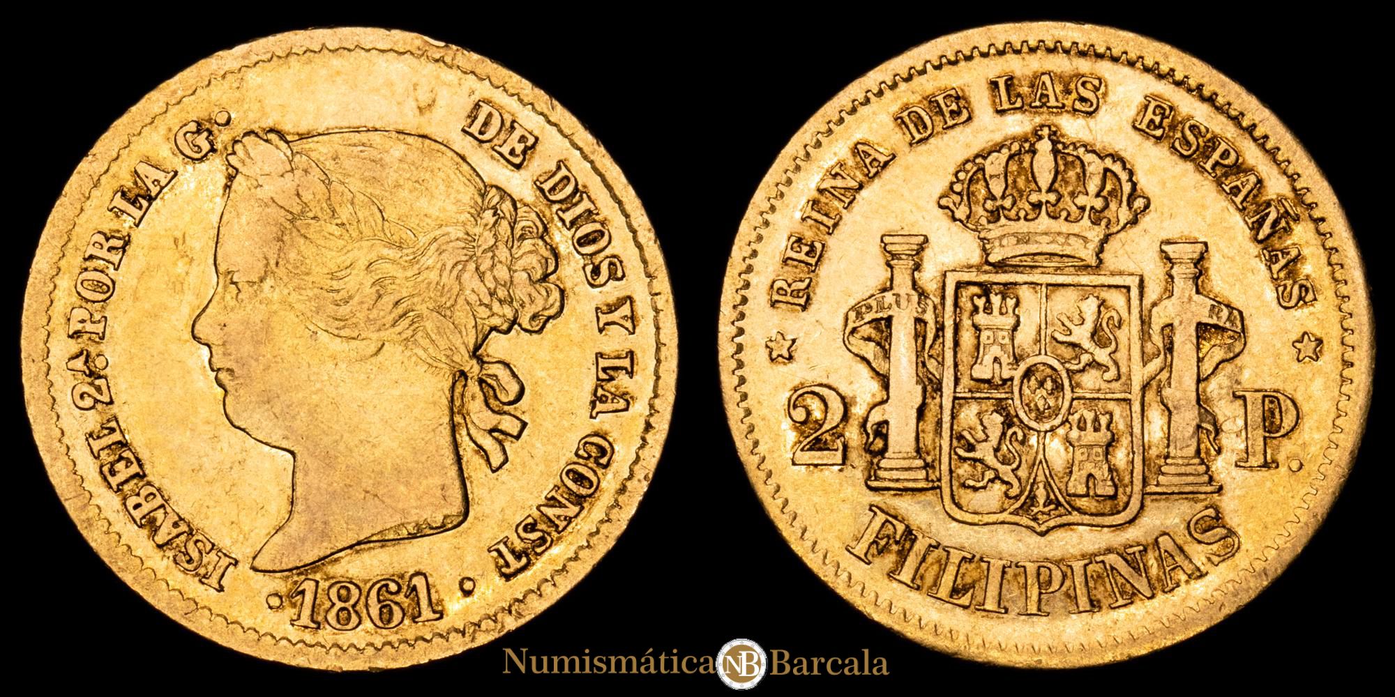 Numismática Barcala > Productos > Monarquia Española > Borbones > 1833-1868 Isabel II > Isabel II. 2 Pesos. (3,41 g.). Manila. 1861. AC-836. MBC+. Escasa