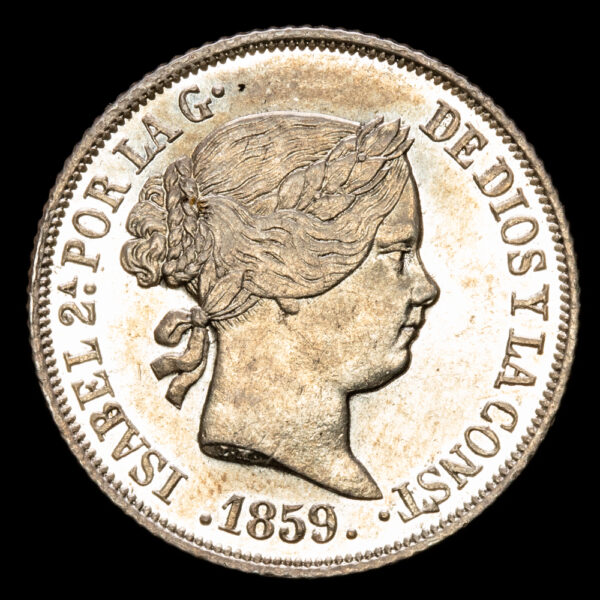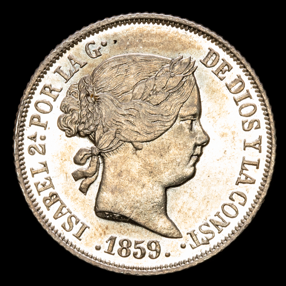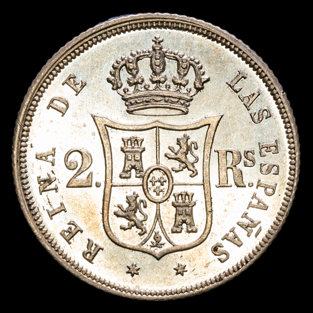 Isabel II. 2 Reales. Madrid. 1859. AC-374. UNC. Excelente condición.Brillo Original