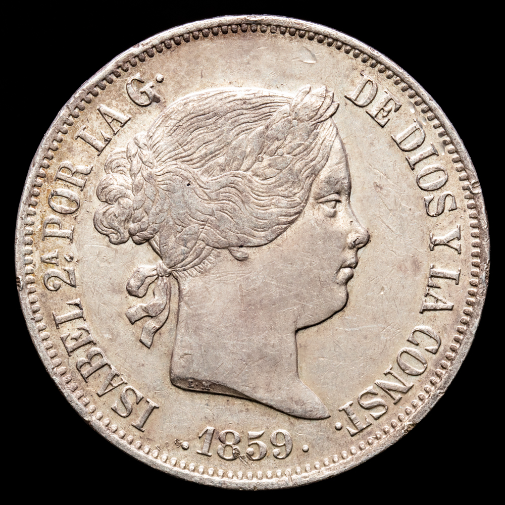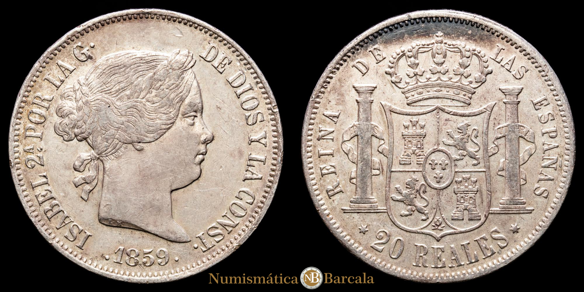 Numismática Barcala > Productos > Monarquia Española > Borbones > 1833-1868 Isabel II > Isabel II. 20 Reales. (25,85 g.). Madrid. 1859. Aureo y Calicó – 616. MBC+.