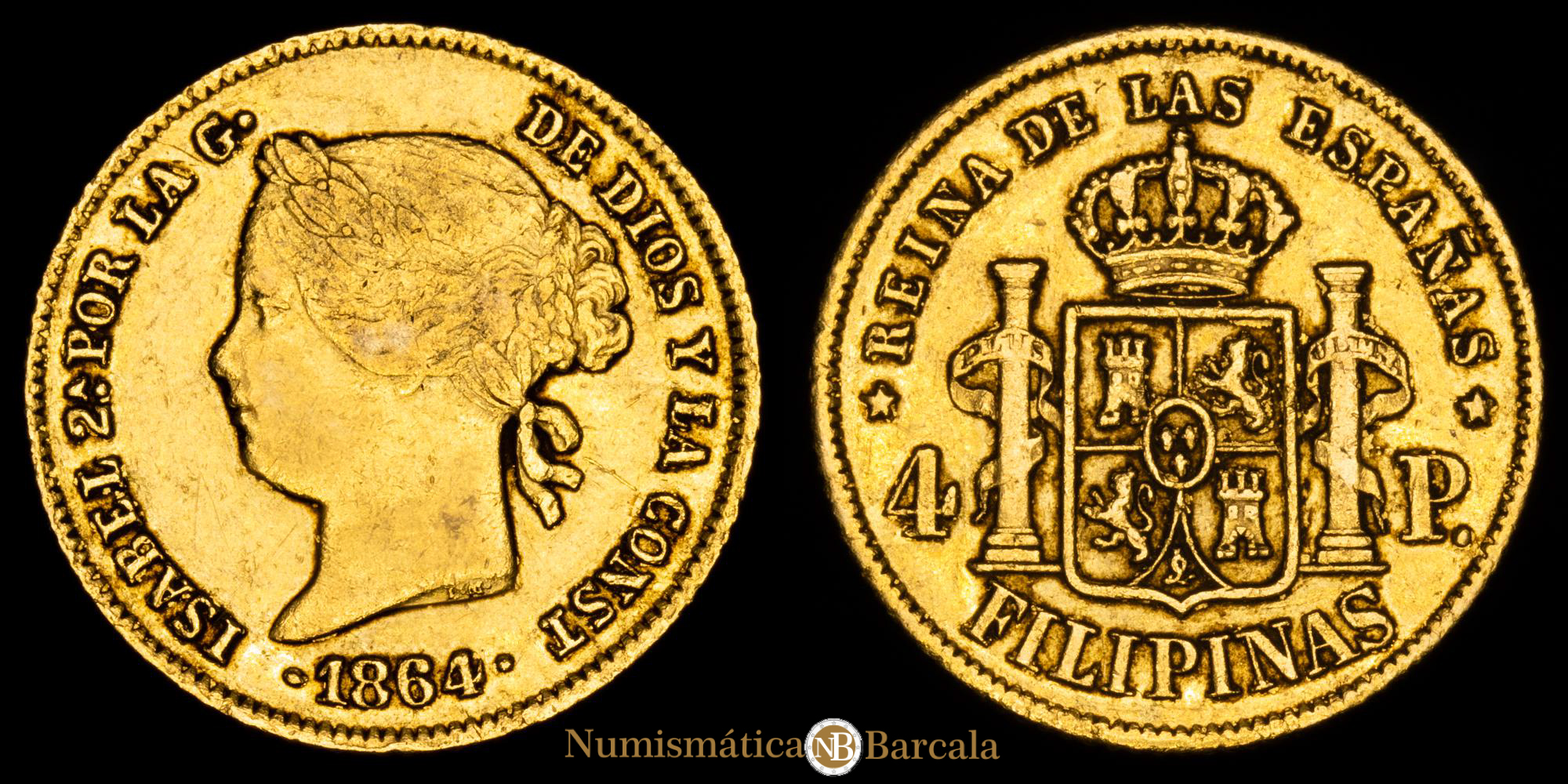 Numismática Barcala > Productos > Monarquia Española > Borbones > 1833-1868 Isabel II > Isabel II. 4 Pesos. (6,76g.). Manila. 1864. CA-858. MBC+.