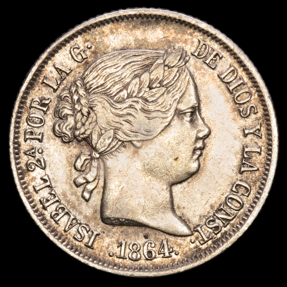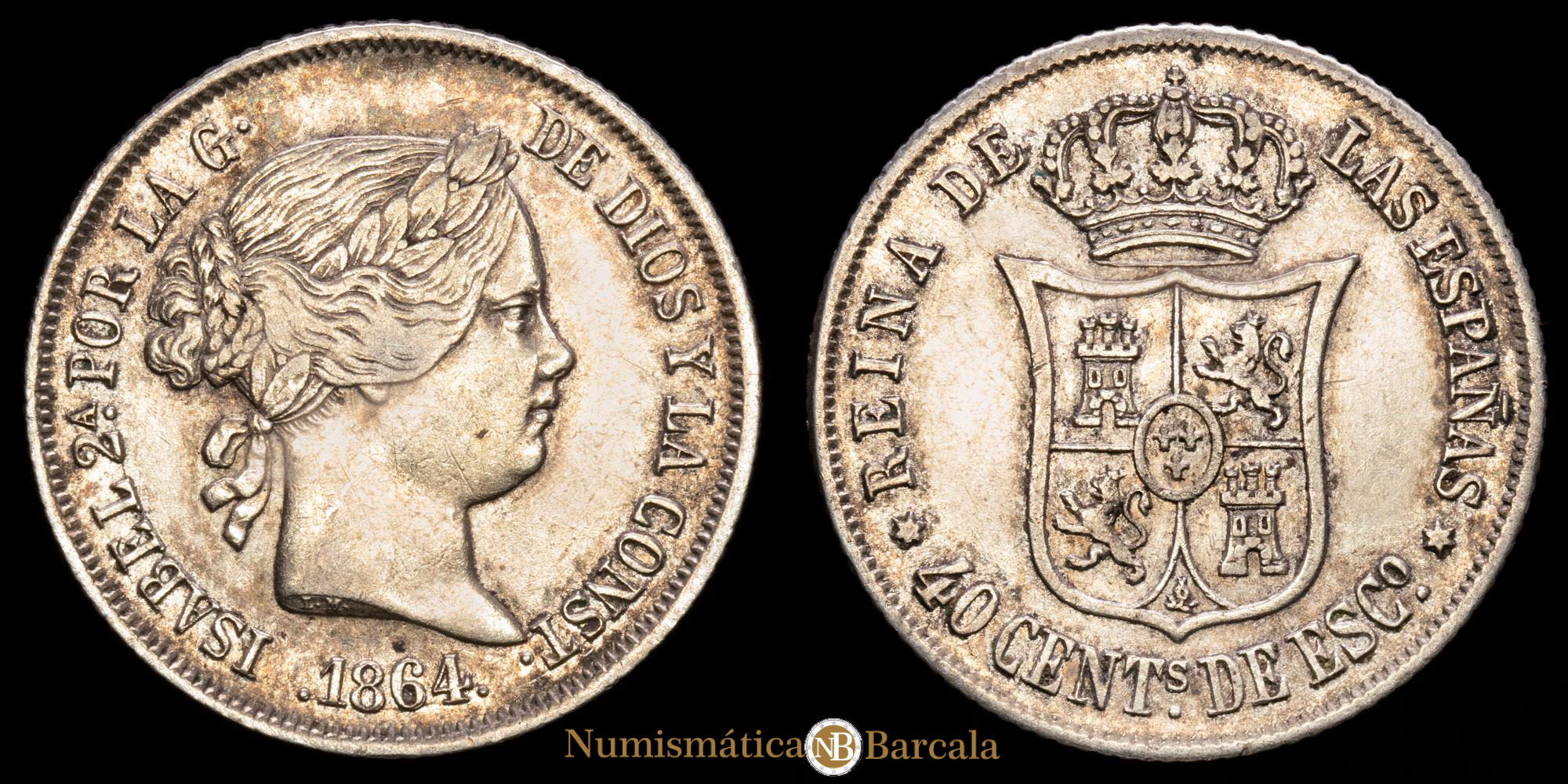 Numismática Barcala > Productos > Monarquia Española > Borbones > 1833-1868 Isabel II > Isabel II. 40 Céntimos. (5,11g.). Madrid. 1864. AC-499. MBC+.