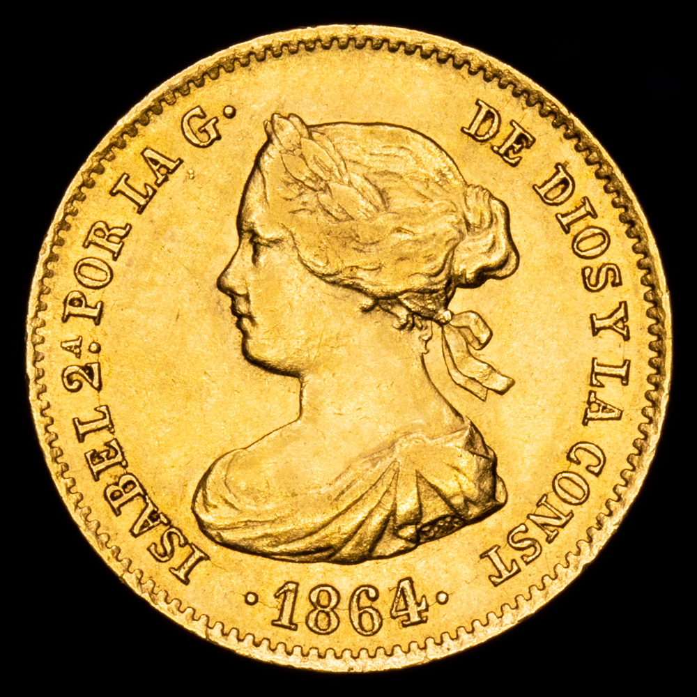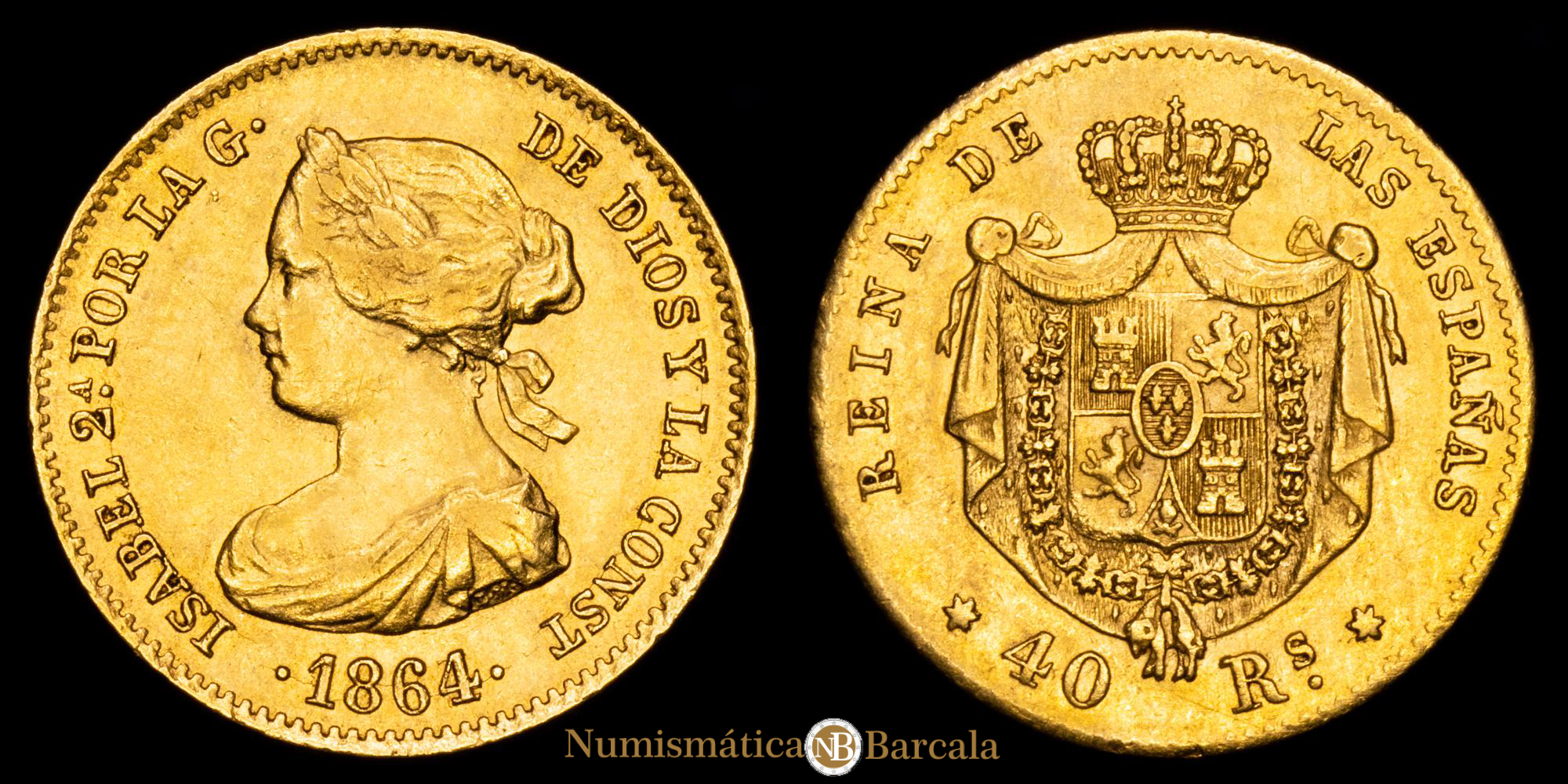 Numismática Barcala > Productos > Monarquia Española > Borbones > 1833-1868 Isabel II > Isabel II. 40 Reales. (3,36g.). Madrid. 1864. AC-686. VF+.