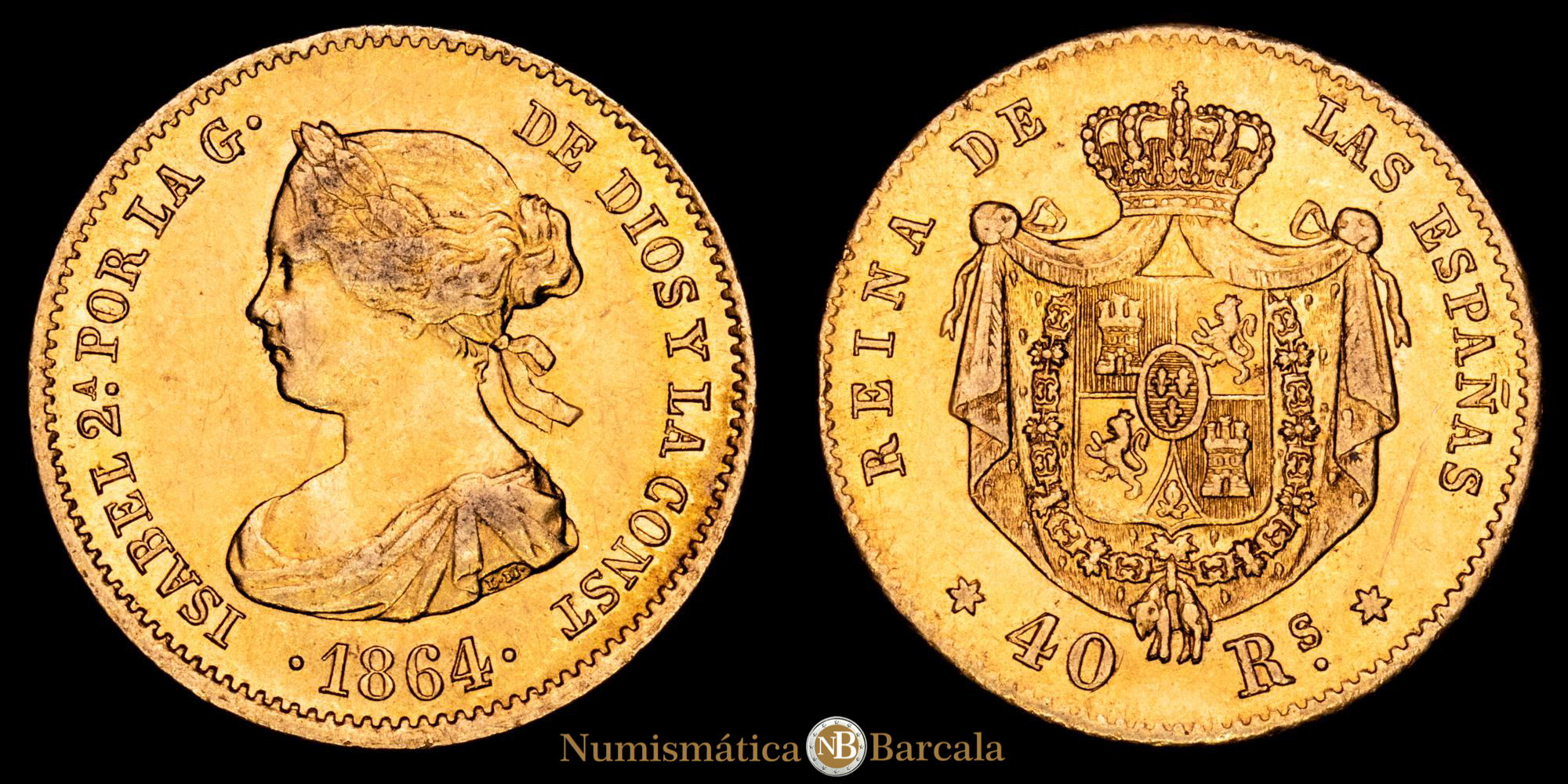 Numismática Barcala > Productos > Monarquia Española > Borbones > 1833-1868 Isabel II > Isabel II. 40 Reales. ( 3,36 g.). Madrid. 1864. AC-686. MBC+.