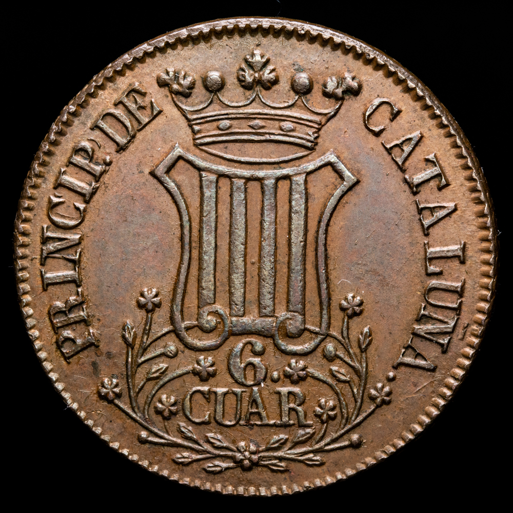 Numismática Barcala > Productos > Monarquia Española > Borbones > 1833-1868 Isabel II > Isabel II. 6 Cuartos. (14,85g.). Barcelona. 1838. CA-6. EBC.