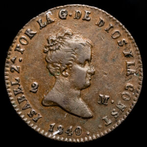 Isabel II. 2 Maravedís (2,48 g.). Segovia. 1840. AC-51. EBC. Restos de brillo original.