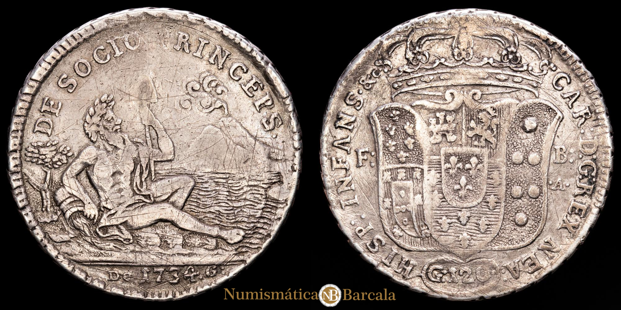Numismática Barcala > Productos > Monedas Mundiales > Europa > Italia > Italia – Carlos III. 120 Grana. (25,02g.). Nápoles. 1734. KM-C23. VF. Rara