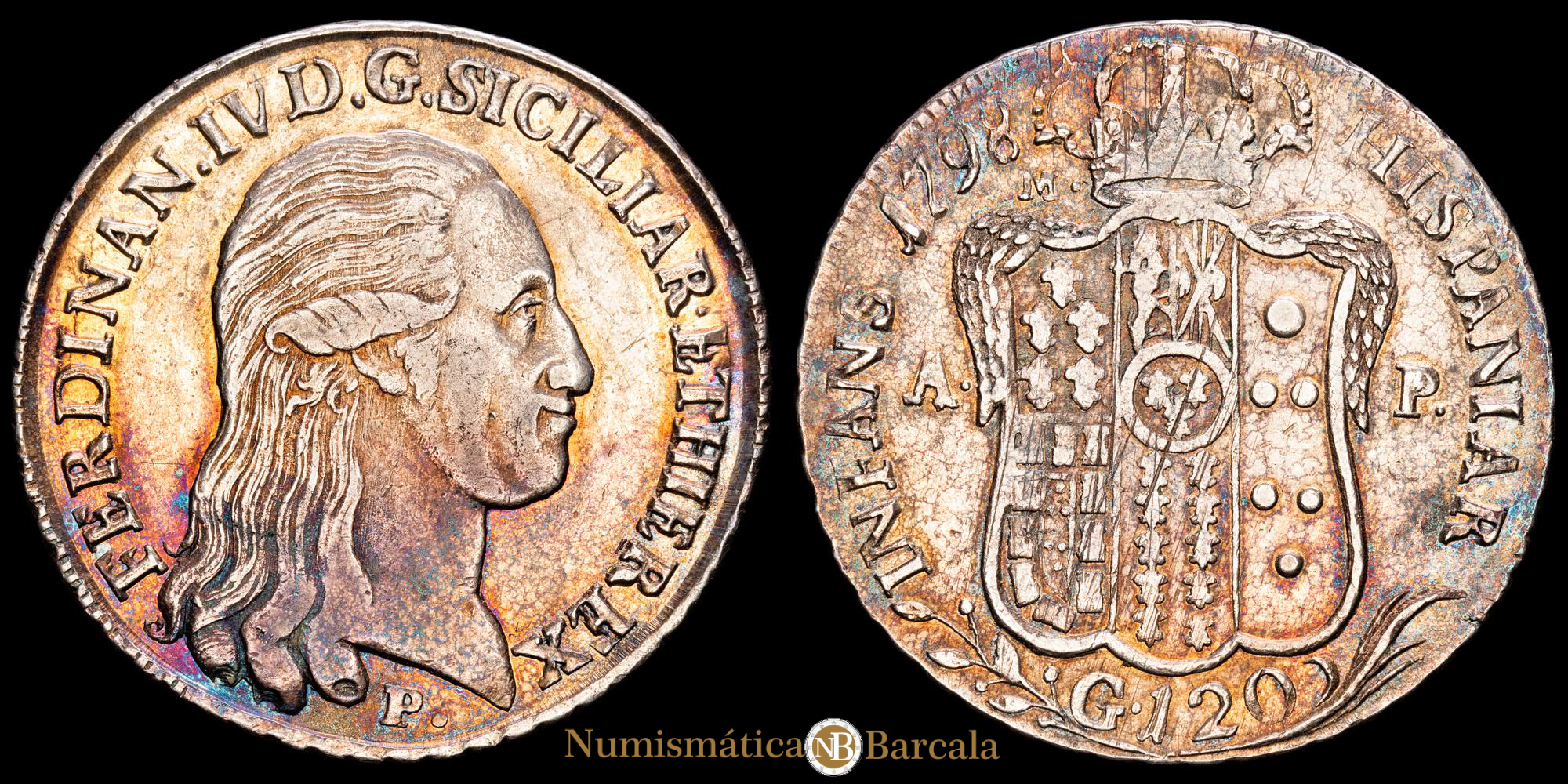 Numismática Barcala > Productos > Monedas Mundiales > Europa > Italia > Italia – Ferdinan IV. 120 Gana. (27,53g.). Napoles. 1798. KM-215. XF. Rara en esta conservación.