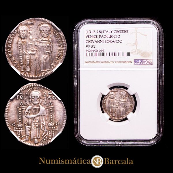 Numismática Barcala > Productos > Monedas Mundiales > Europa > Italia > Italia. Grosso Venice (1312-28) Paolucci-2 Giovanni Soranzo Encapsulada por la NGC VF35.