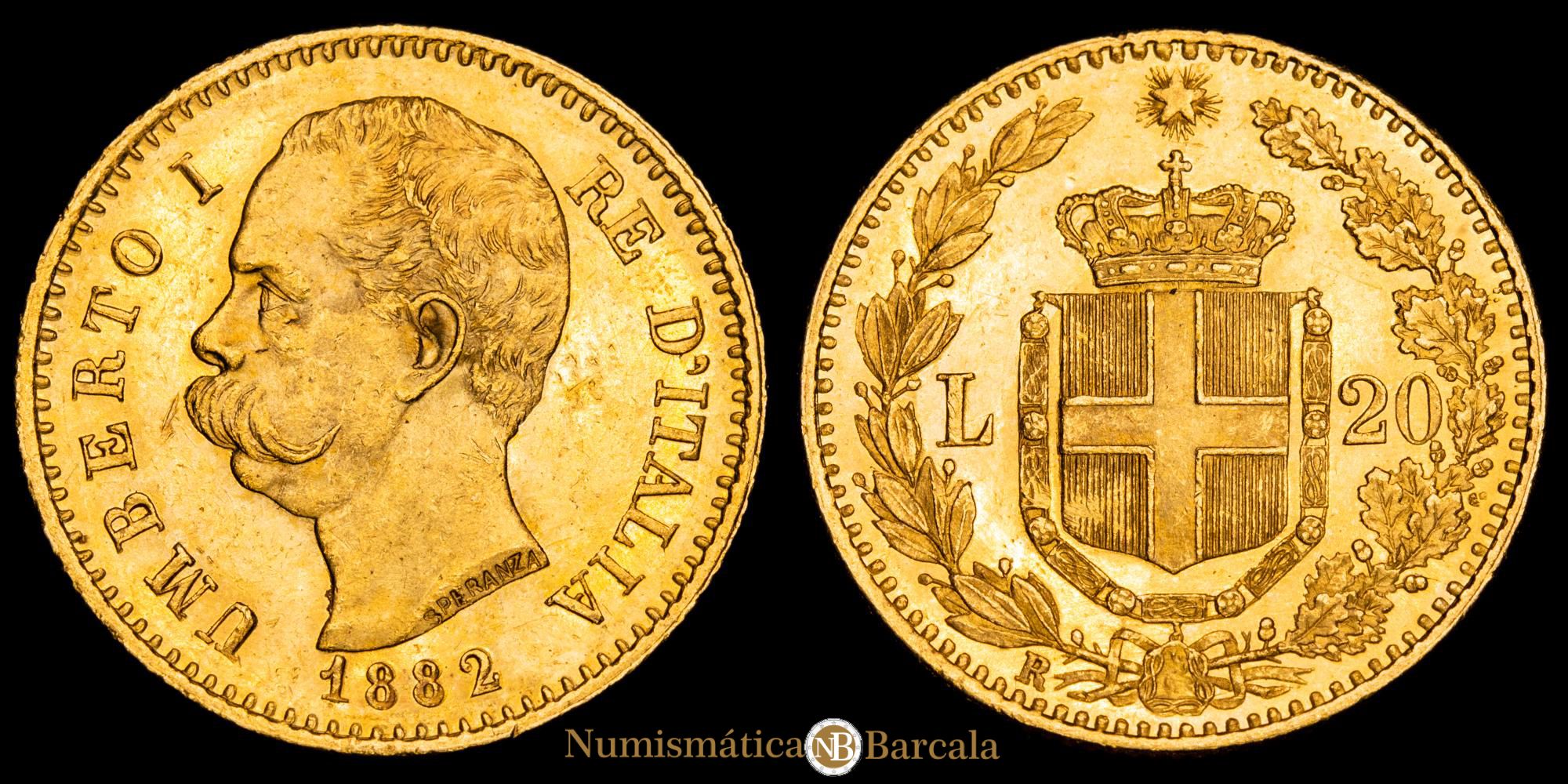 Numismática Barcala > Productos > Monedas Mundiales > Europa > Italia > Italia – Umberto I. 20 Liras. (6,45g.). Roma · R. 1882. KM-21. UNC-.