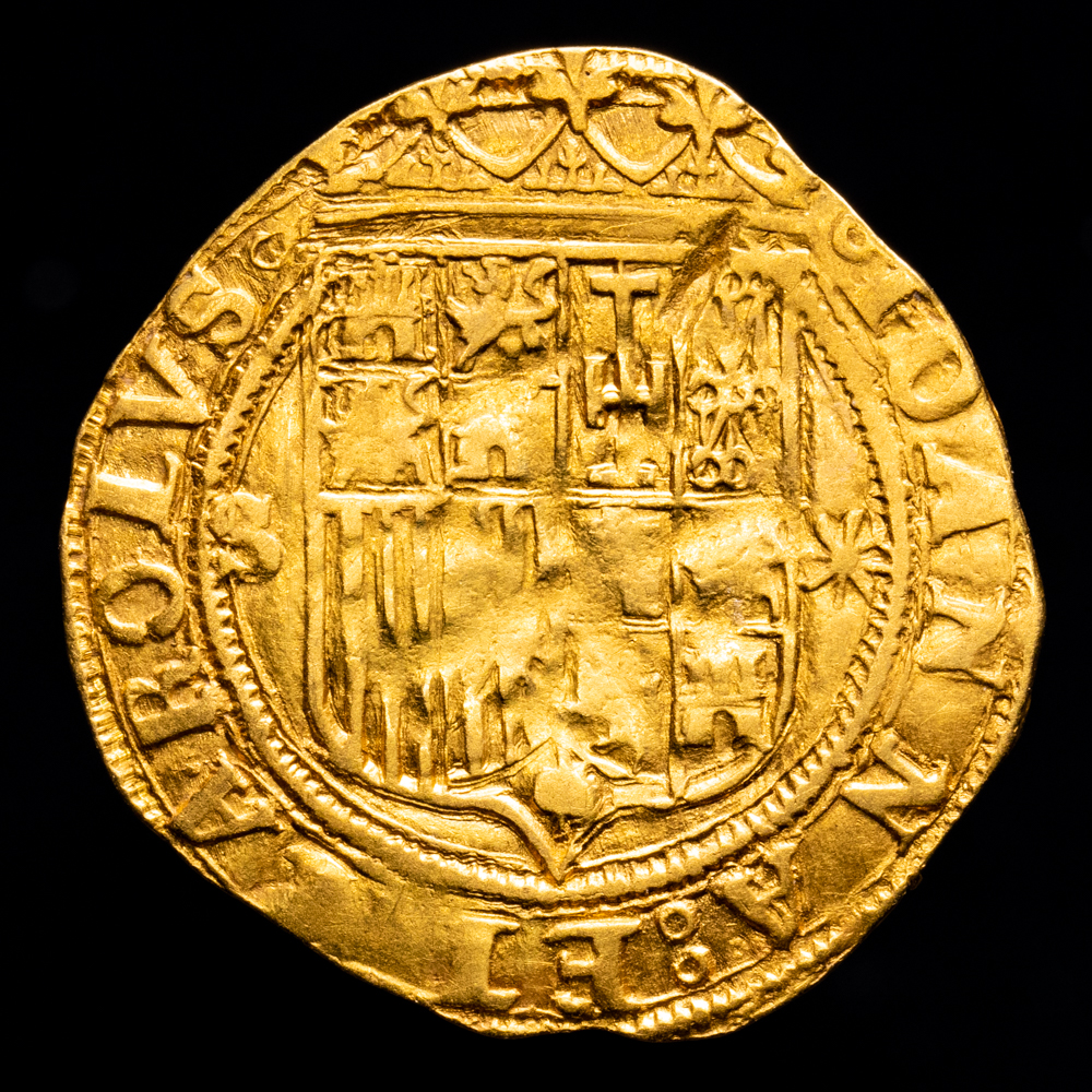 Numismática Barcala > Productos > Otras piezas > Juana y Carlos (1504-1555). 1 escudo. ND. Sevilla. (Cal-196). (Tauler-24). Anv.: IOANNA · ET · KAROLVS. Rev.: HISPANIARVM REGES :: SICILIAE. Au. 3,29 g.