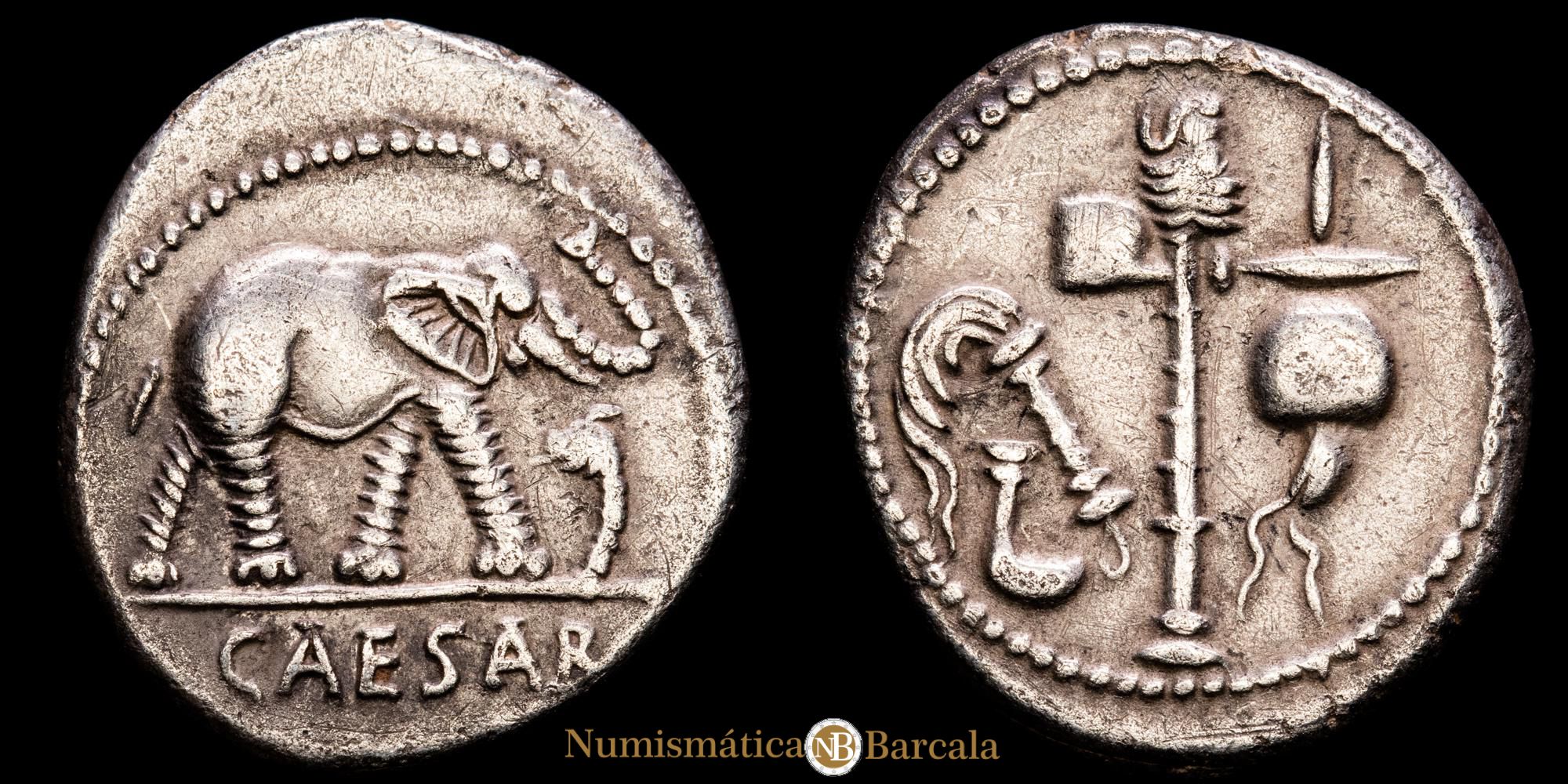 Numismática Barcala > Productos > Romanas > IMPERIO ROMANO > Julio César. Denario. (3,69 g.). Galia. 54-51 a.C.. Craw-443/1. EBC-. Escasa. Buen ejemplar.