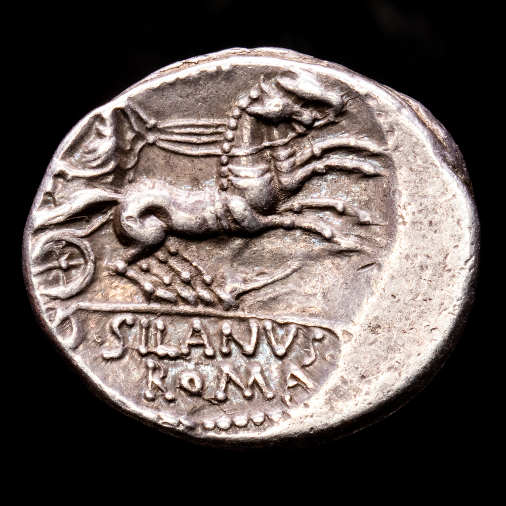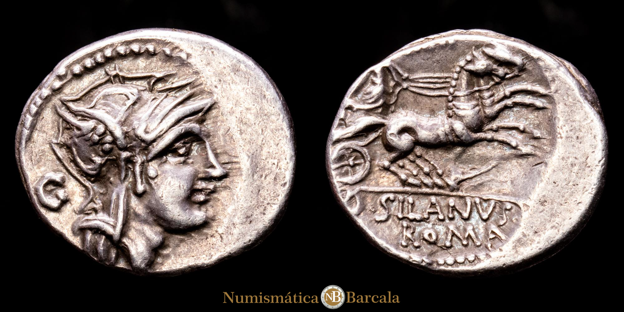 Numismática Barcala > Productos > Romanas > REPÚBLICA > Junius Silanus. Denario. (3,92 g.). Roma. 91 a.C.. Craw-337/3. EBC-/MBC+. Conserva etiqueta del coleccionista