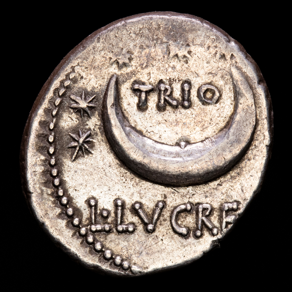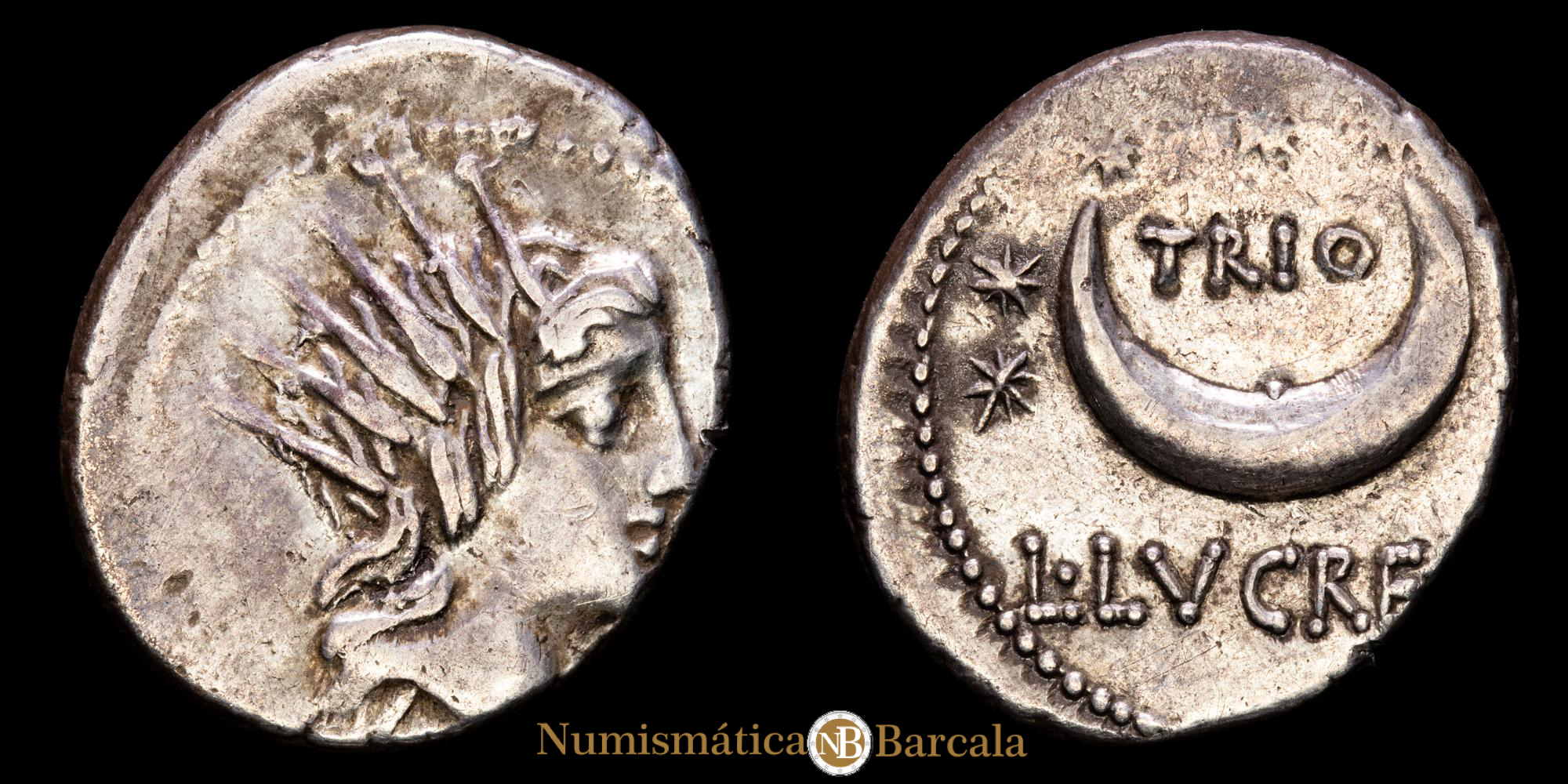 Numismática Barcala > Productos > Romanas > REPÚBLICA > L. Lucretius Trio. Denario de plata (3,74 g.) Roma, 74 a.C. Craw-390-1. XF