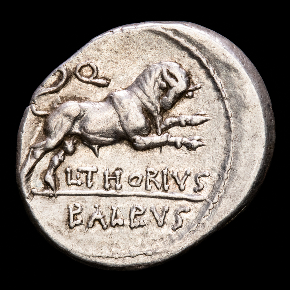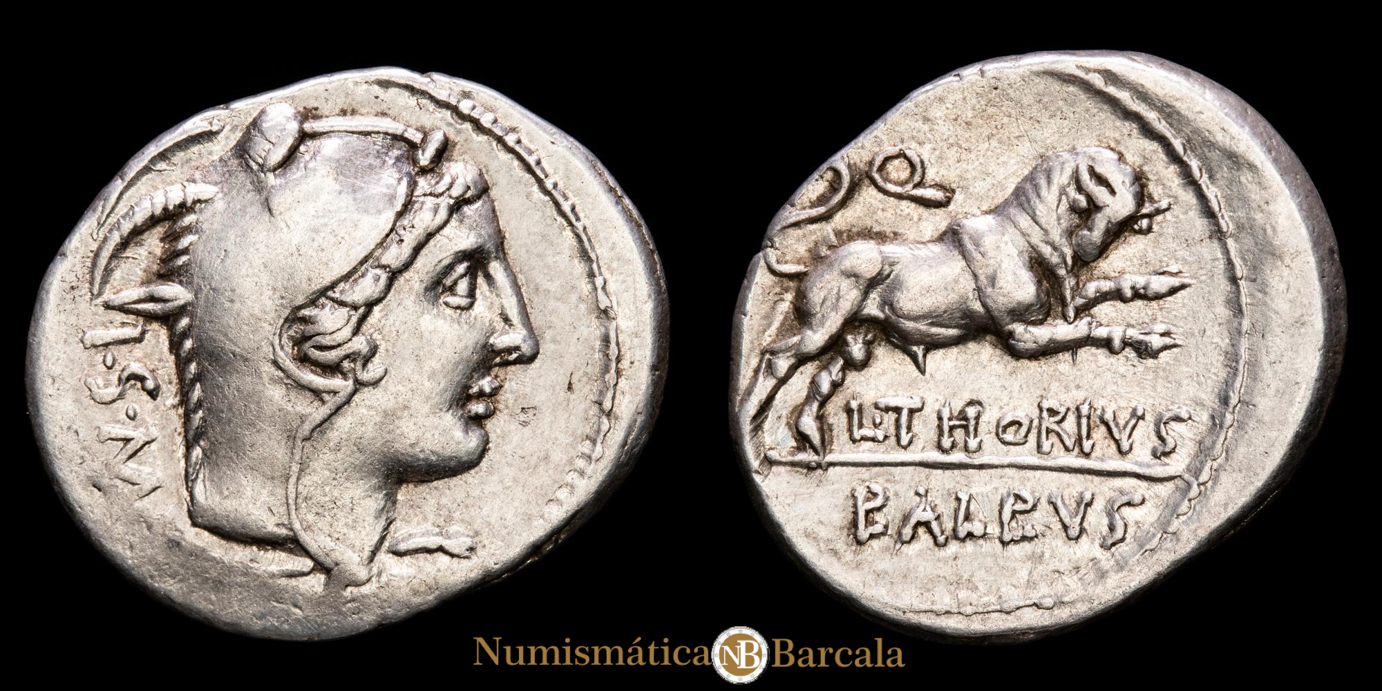 Numismática Barcala > Productos > Romanas > REPÚBLICA > L. Thorius Balbus. Denario de plata (3,92 g.). Roma, 105 a.C. Craw-316/1. XF