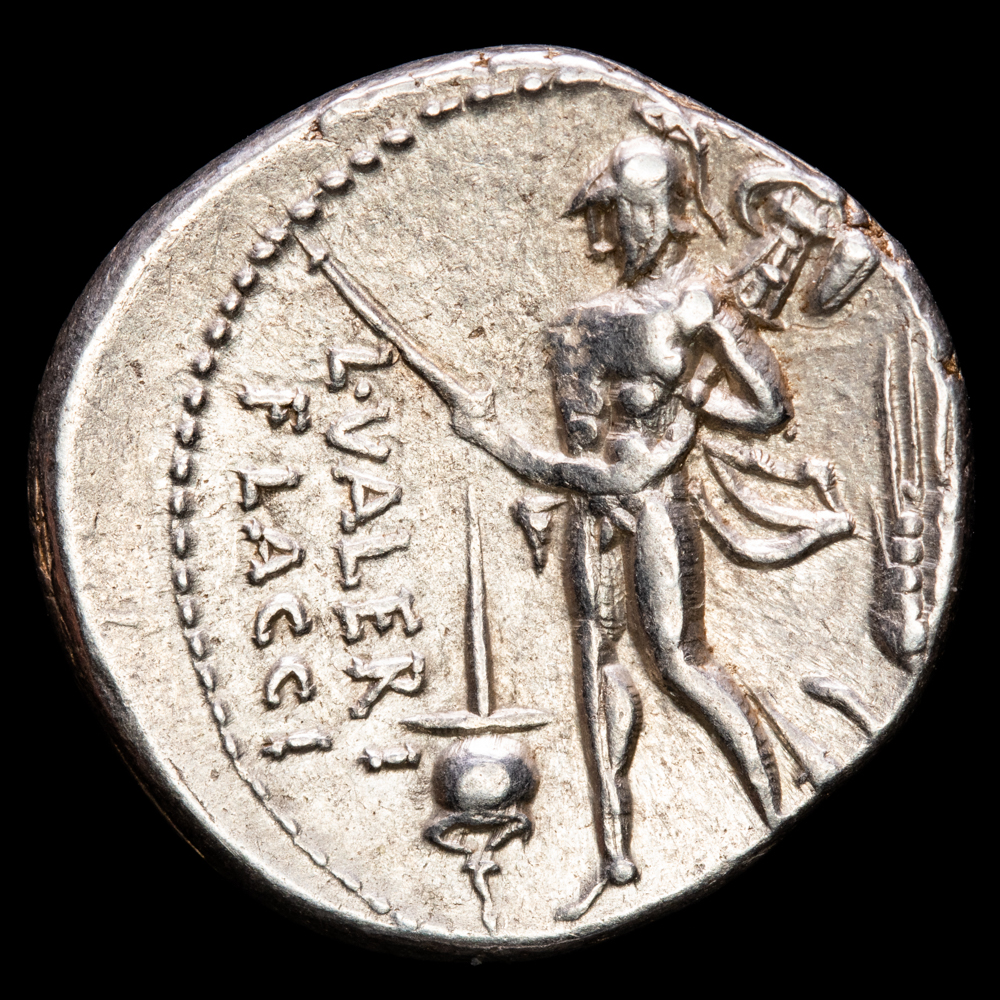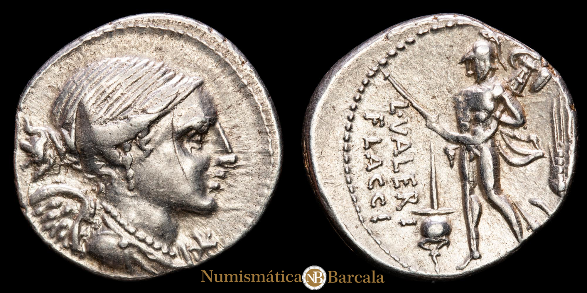 Numismática Barcala > Productos > Romanas > REPÚBLICA > L Valerius Flaccus. Denario de plata (3,90 g.). Roma, 107 a.C. Craw-306/1. EBC