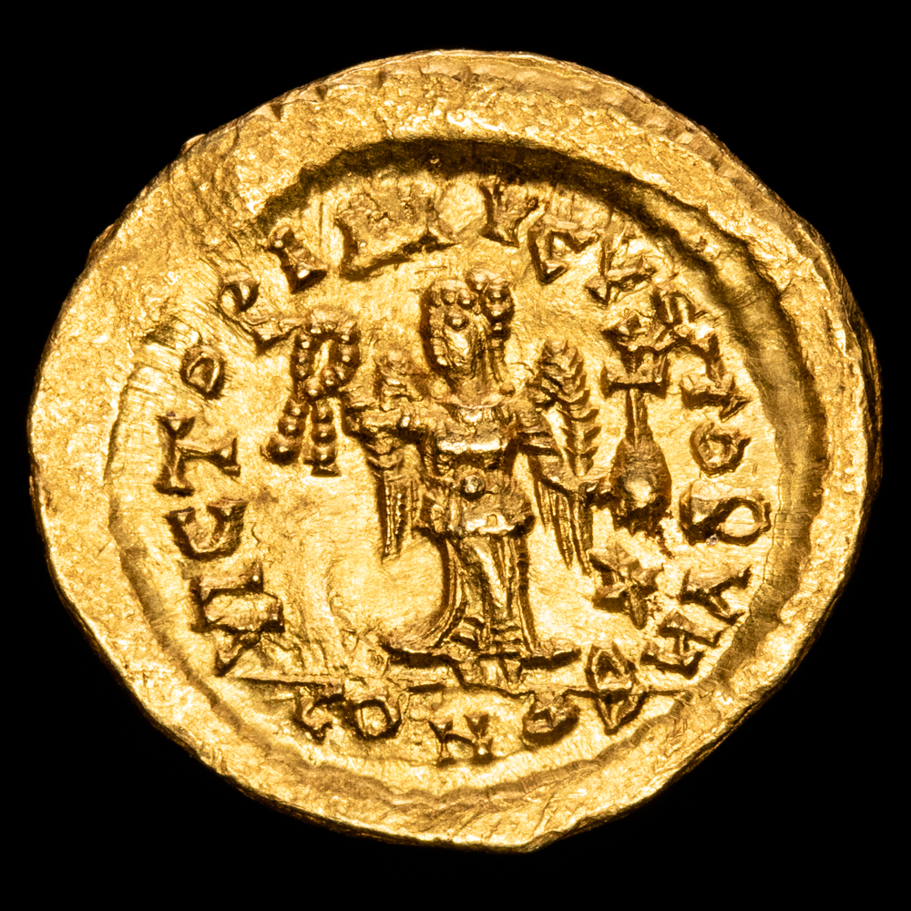 Leon I El Grande. Temisis de oro (1,51 g.). Constantinopla, 462-466 d.C. DN LEO PF-SPET AVG / VICTORIA. RIC-X-611. XF+