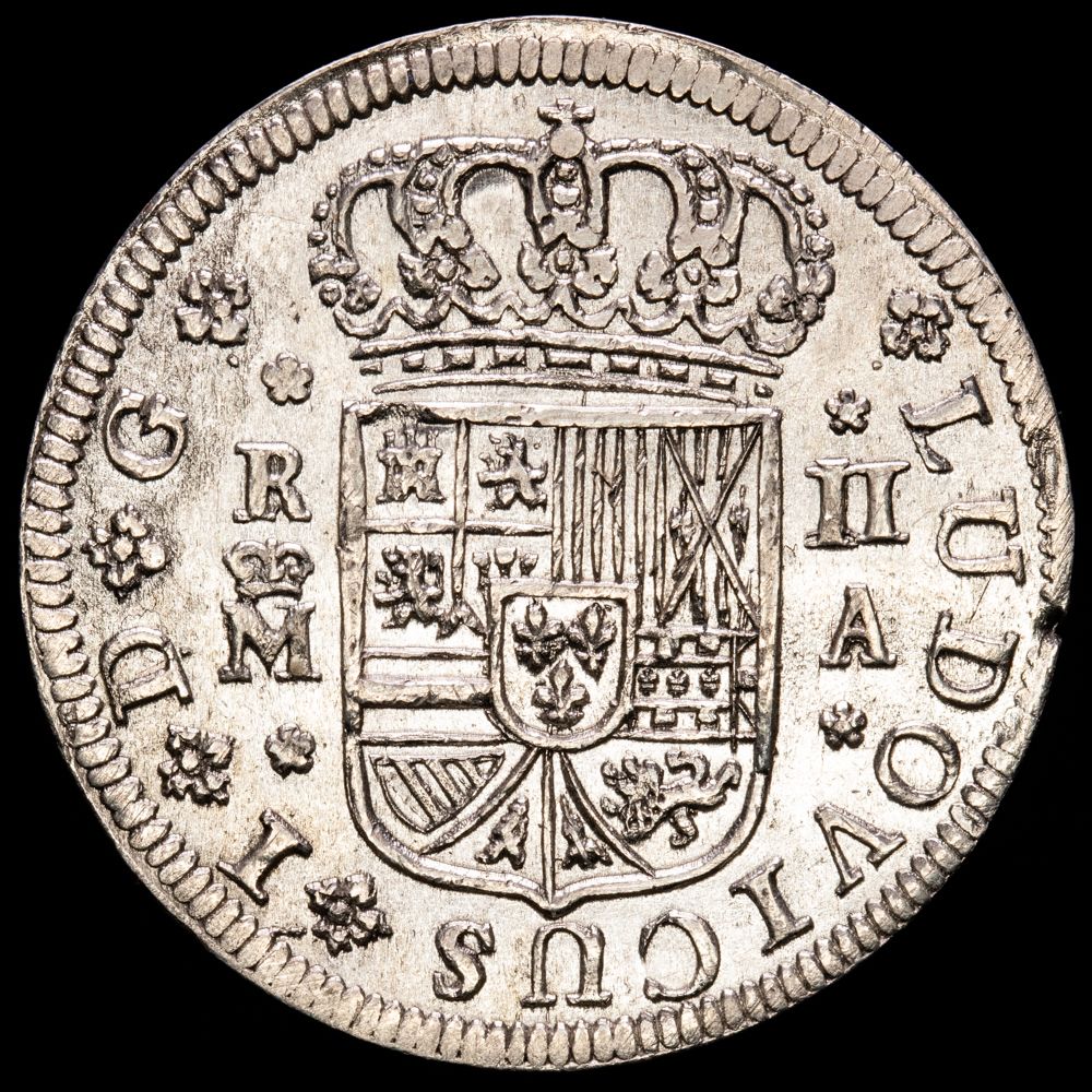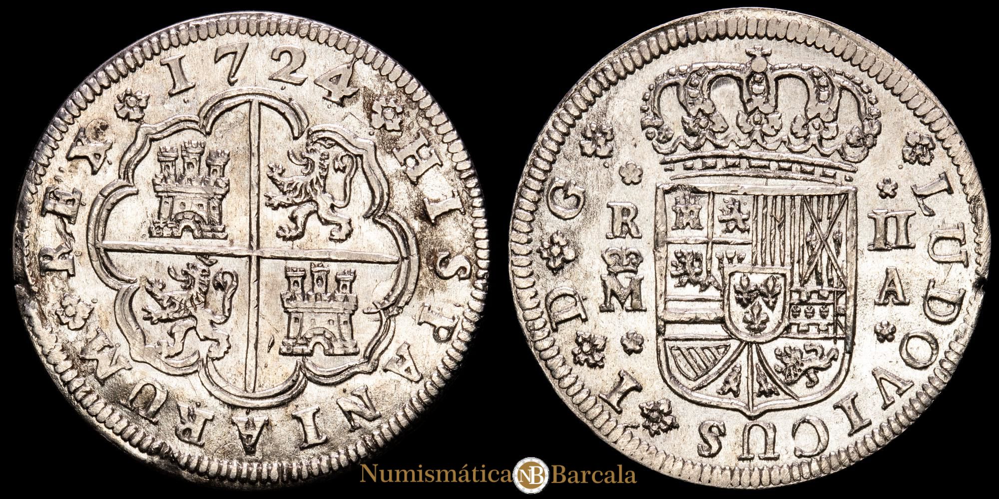 Numismática Barcala > Productos > Monarquia Española > Borbones > 1724 Luis I > Luis I. 2 Reales. (5,75 g.). Madrid. 1724. Ensayador A. AC-21. EBC-. Escasa