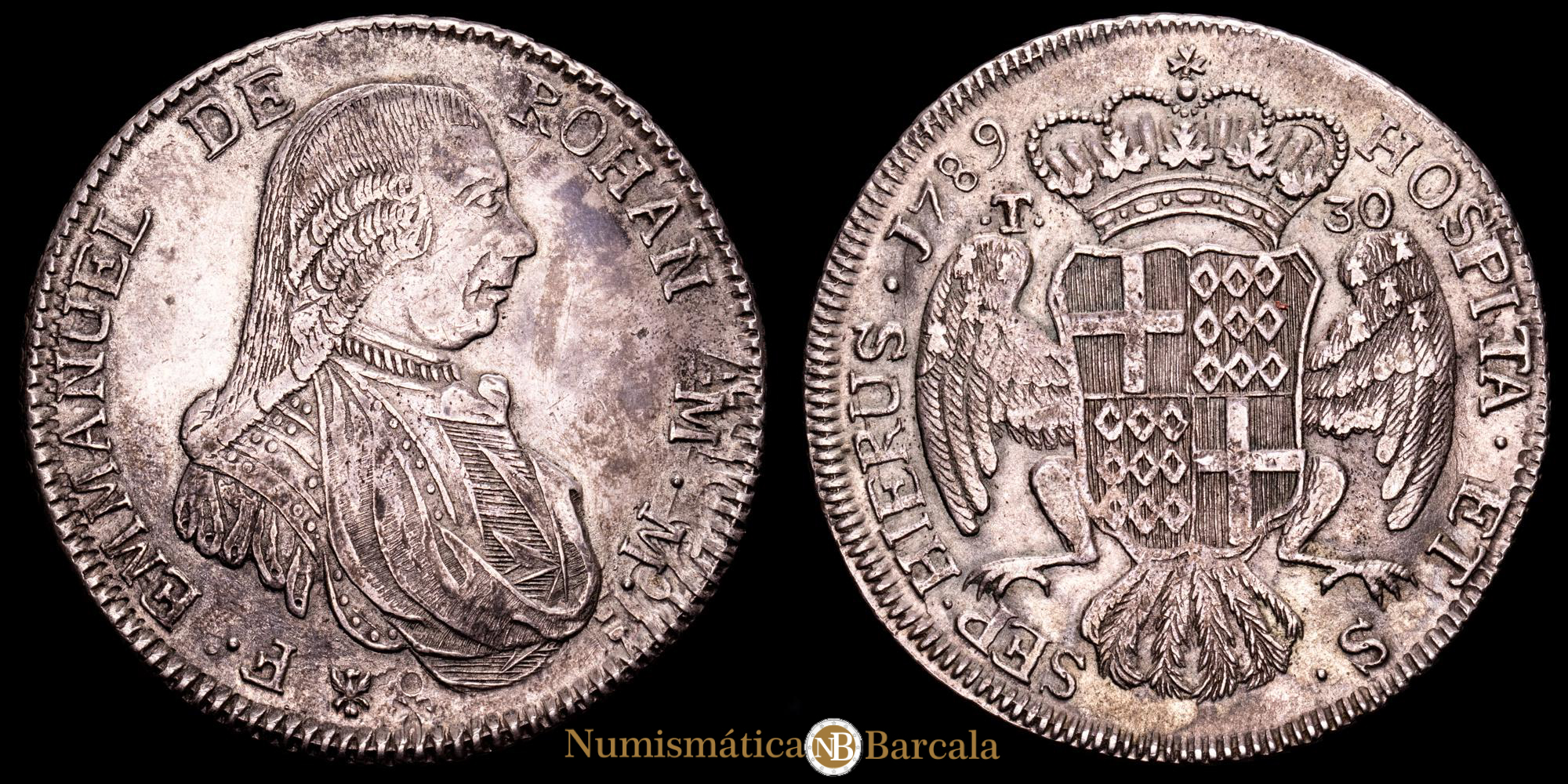 Malta – Emmanuel. 30 Tari. (29,64 g.). La Valete. 1789. DAV-1608. XF+. Excelente condición.