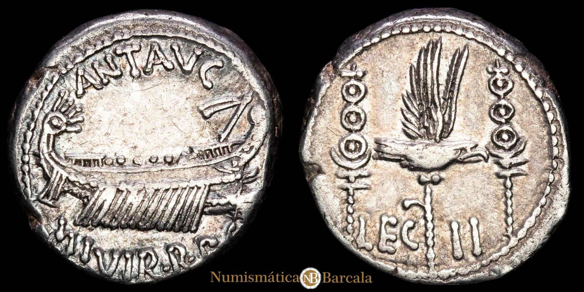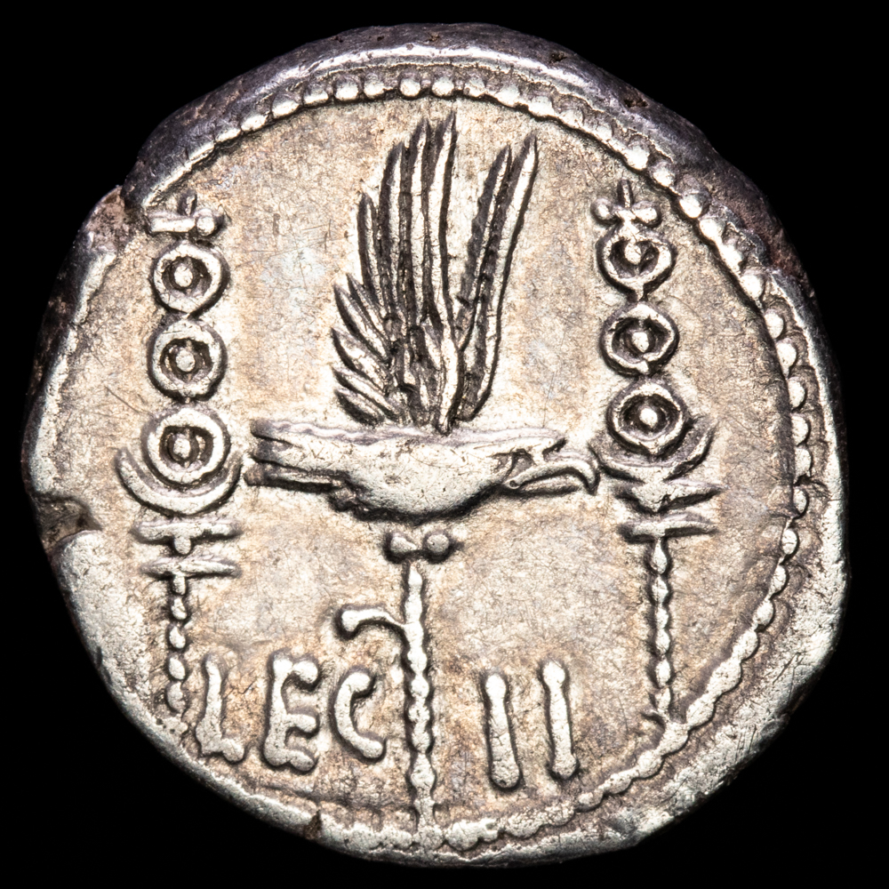 Numismática Barcala > Productos > Romanas > IMPERIO ROMANO > Marco Antonio. Denario de plata (3,59 g.). Roma, 32-31 a.C. ANT·AVG·III·VIR·R·P·C. FFC-32. XF